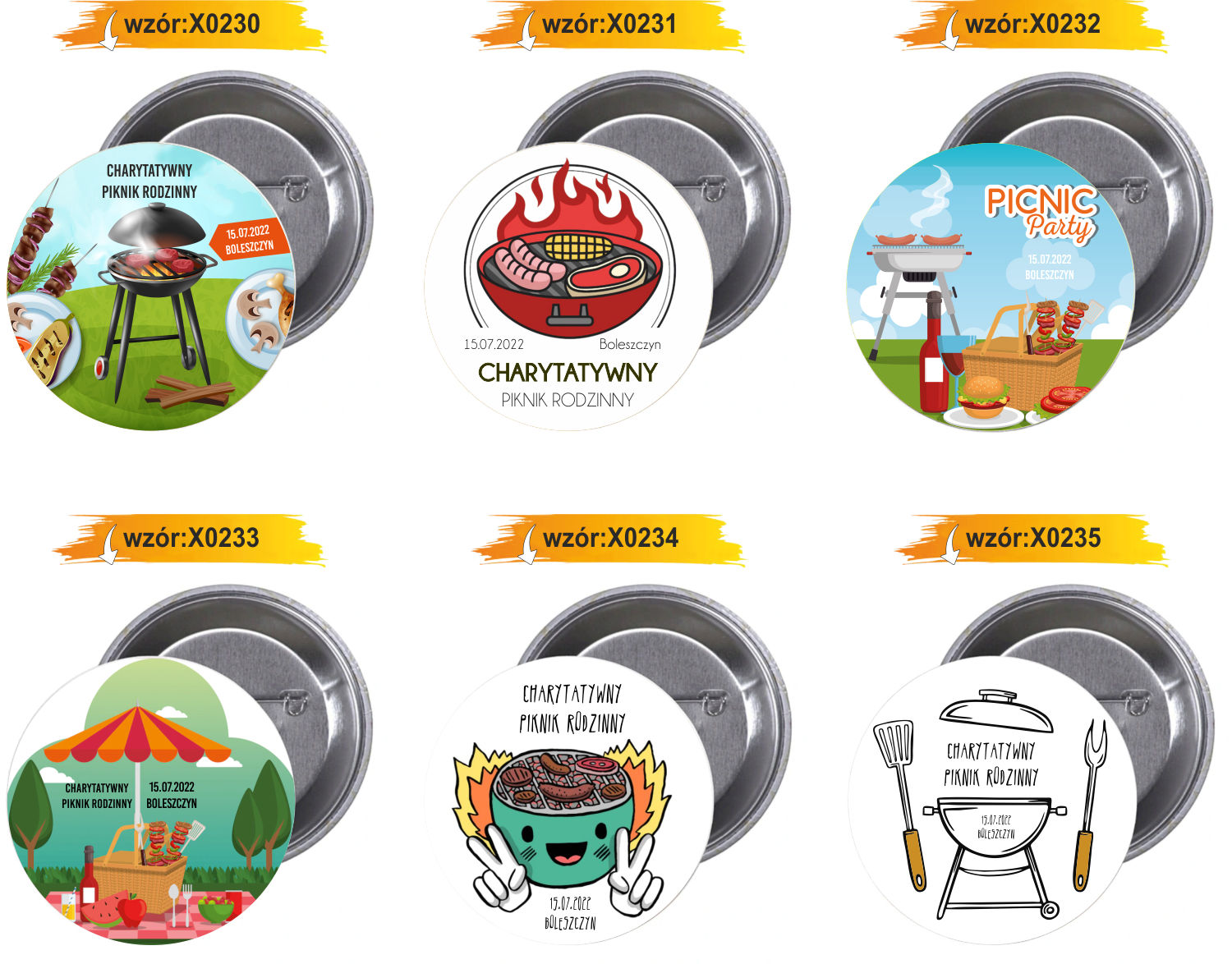 Dostępne gotowe wzory przypinek i buttonów: