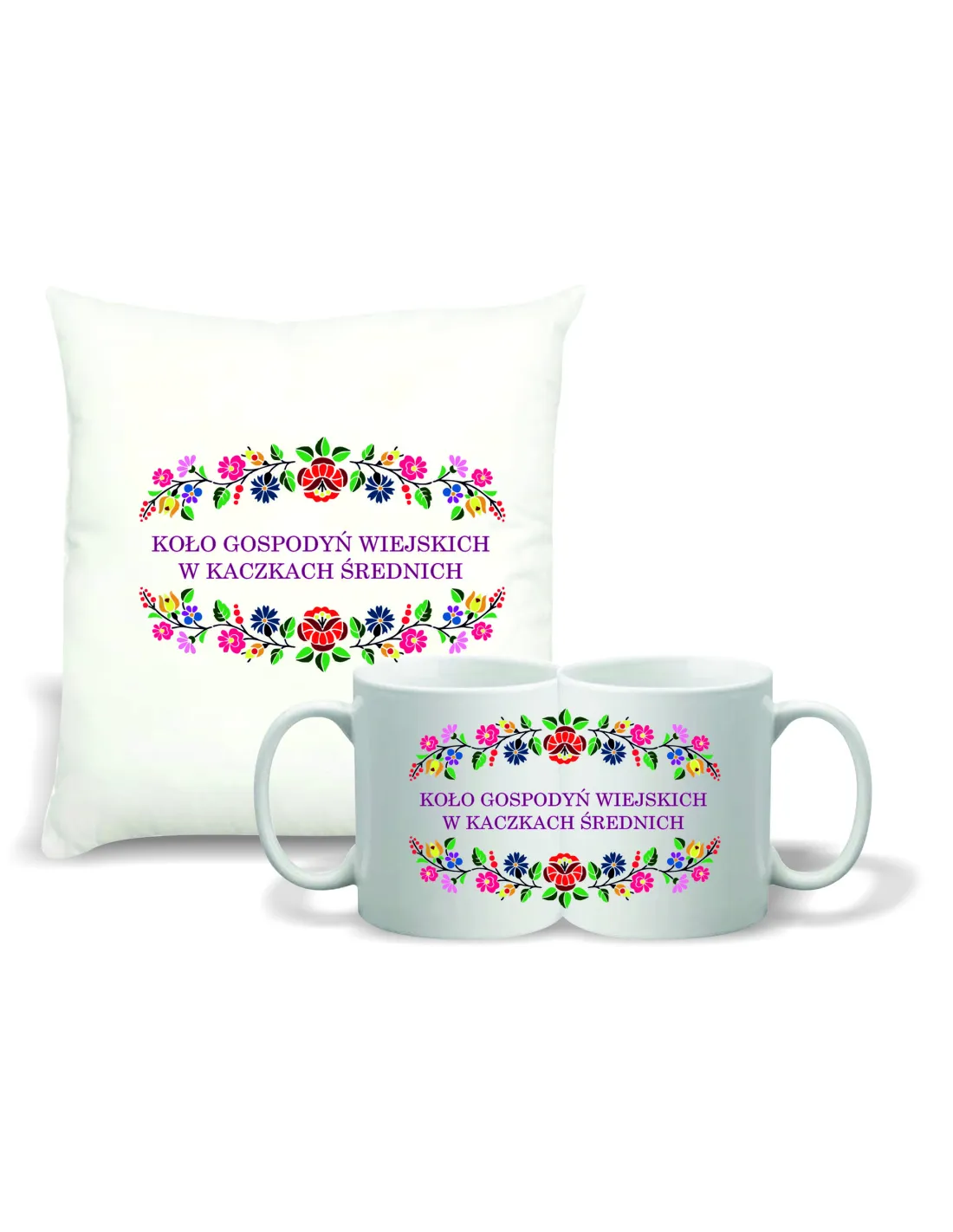 Zestaw PODUSZKA + KUBEK koło gospodyń wiejskich KGW TWÓJ TEKST GRAFIKA