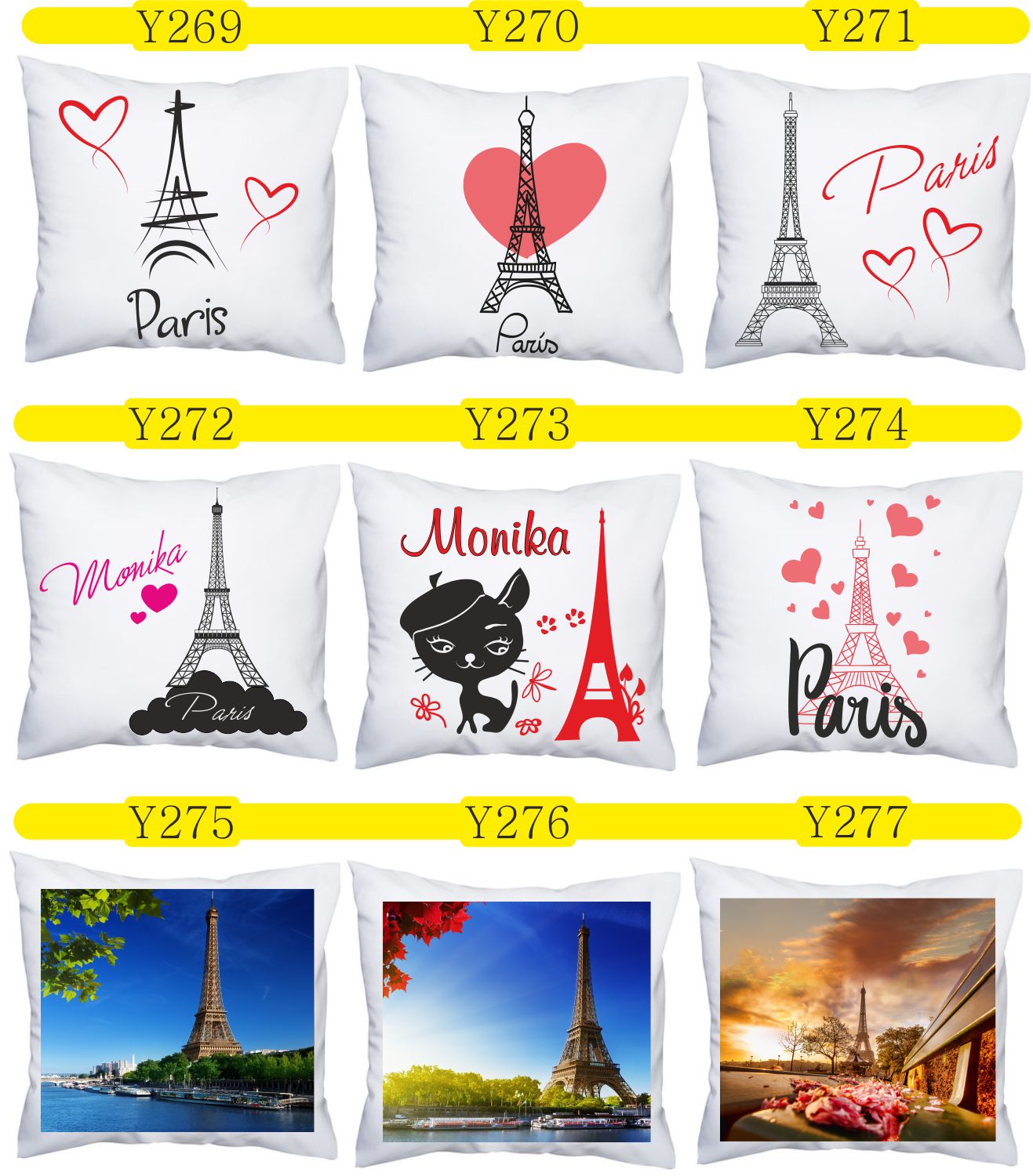 Przykładowe wzory poduszek z nadrukiem: