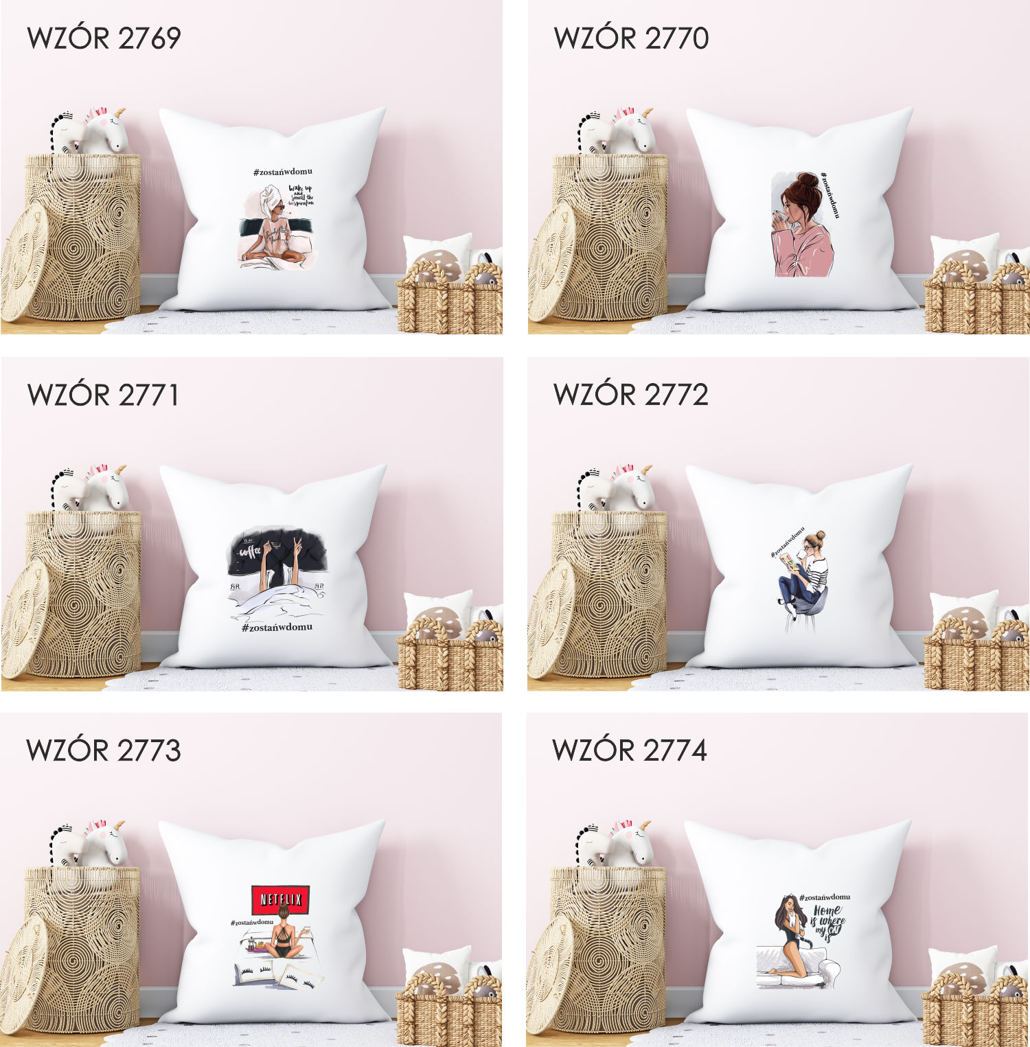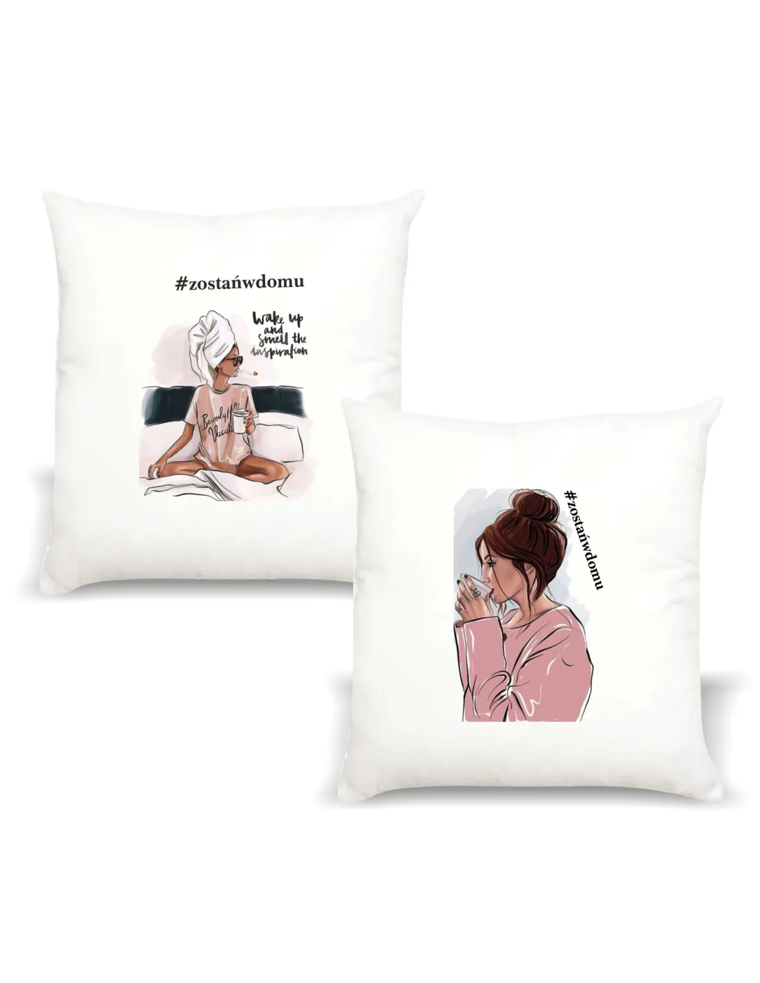 Poduszka z nadrukiem napis PREZENT ZOSTAŃ W DOMU prezent dla przyjaciółek sióstr