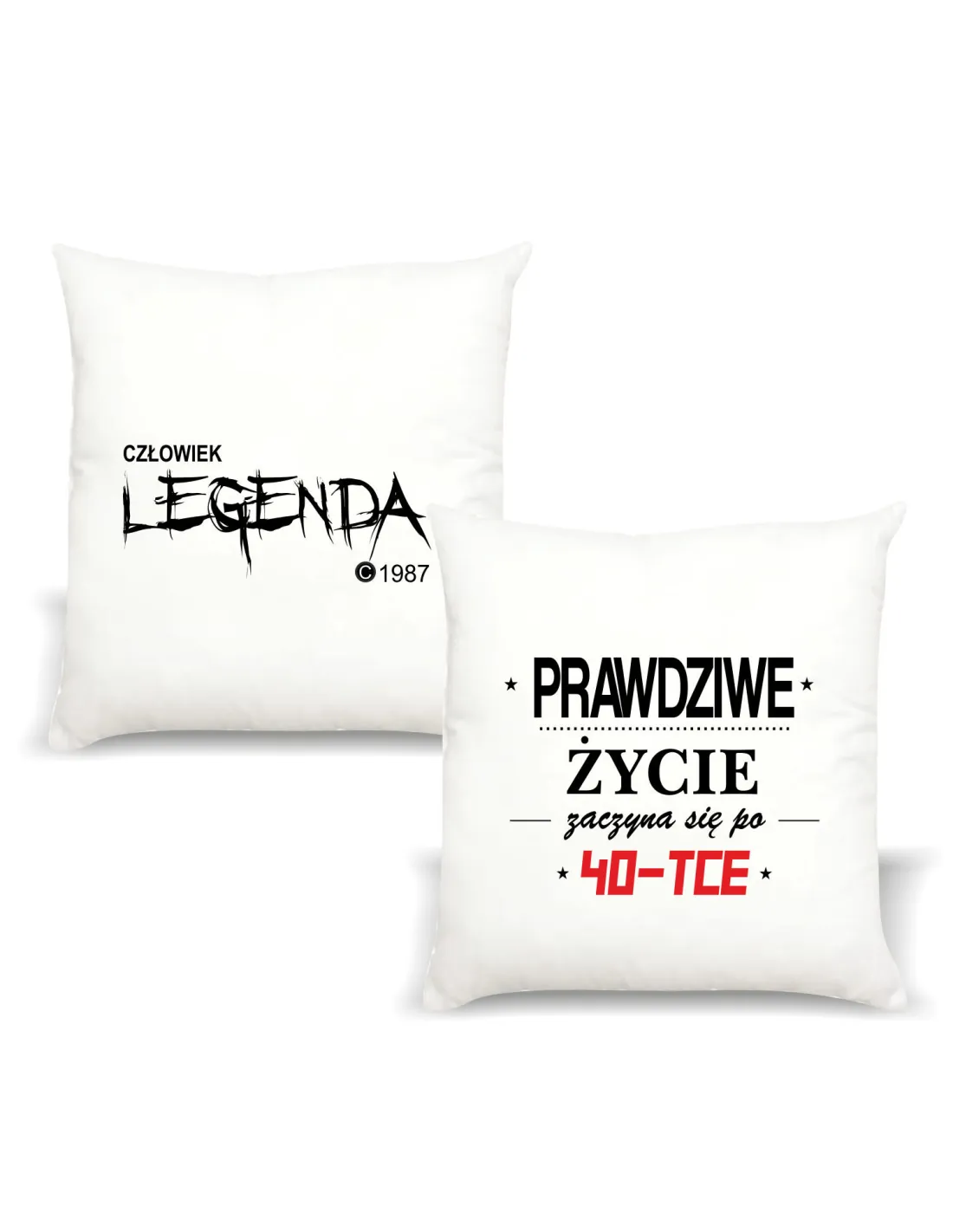 Poduszka z nadrukiem CZŁOWIEK LEGENDA ROK prezent na 40-te urodziny