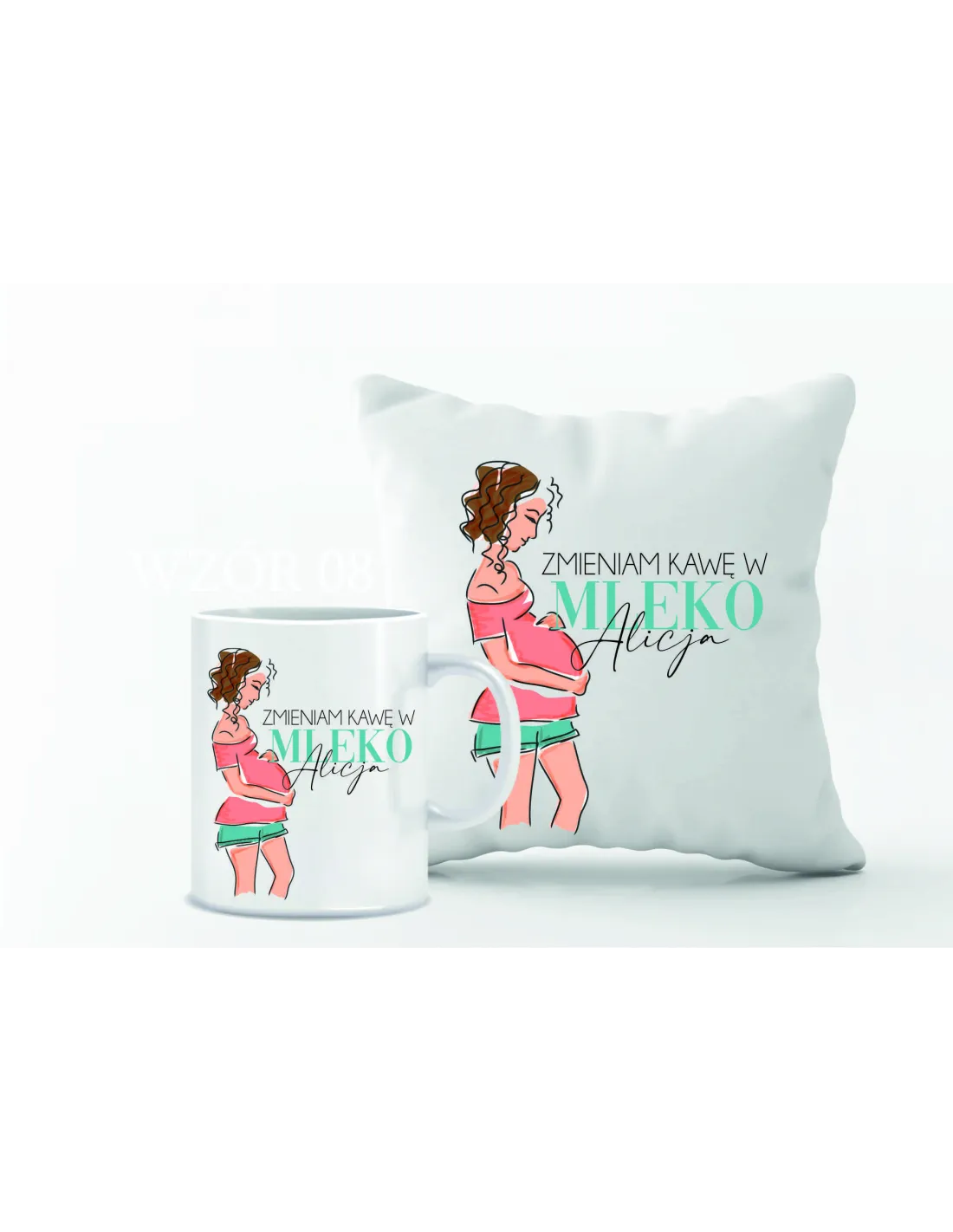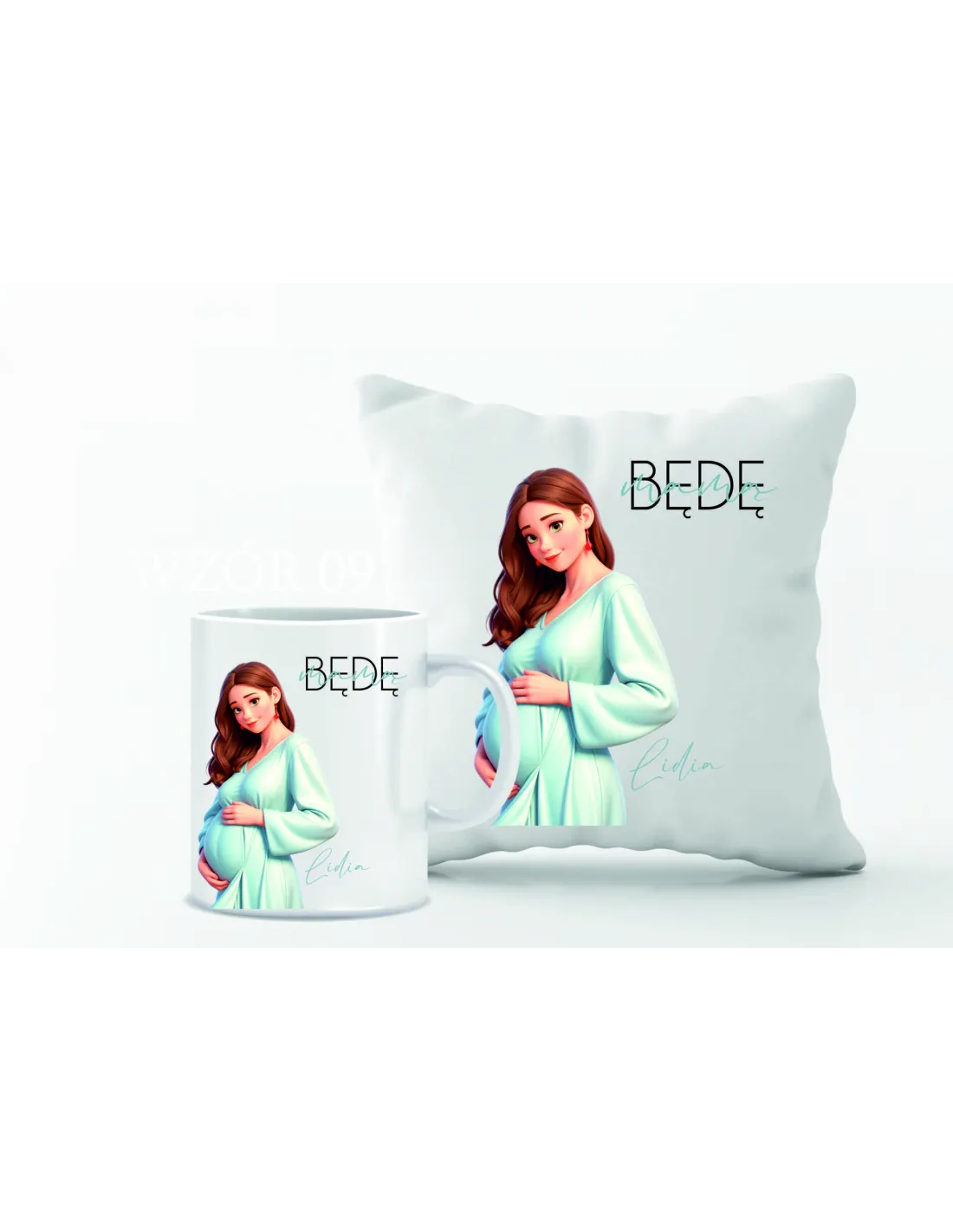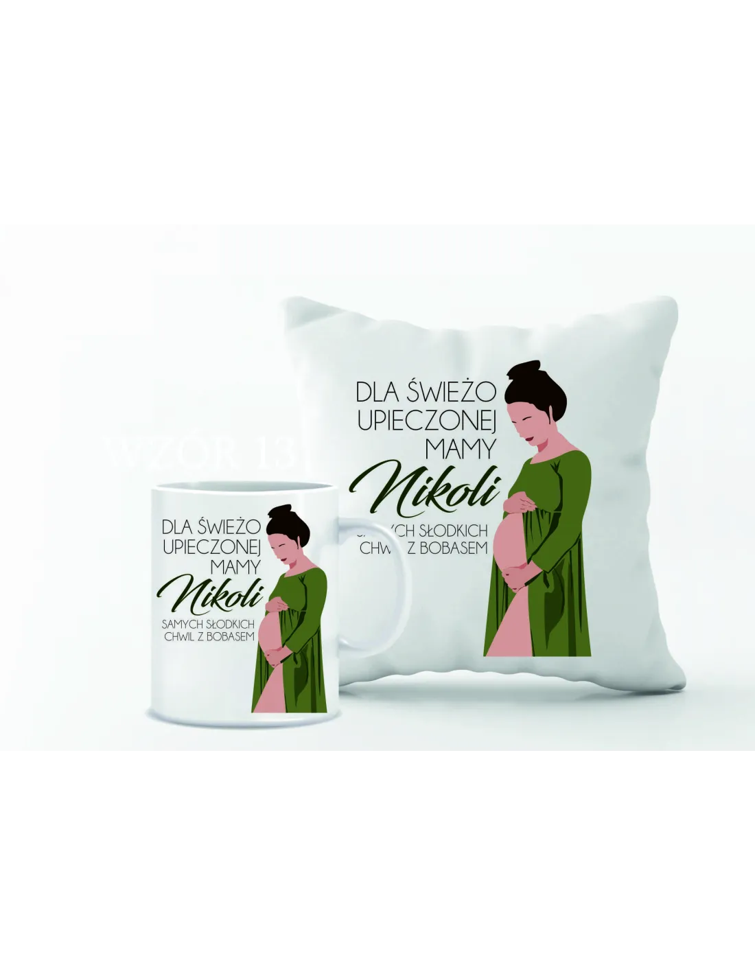Zestaw PODUSZKA i KUBEK z nadrukiem PREZENT dla przyszłej mamy Z IMIENIEM