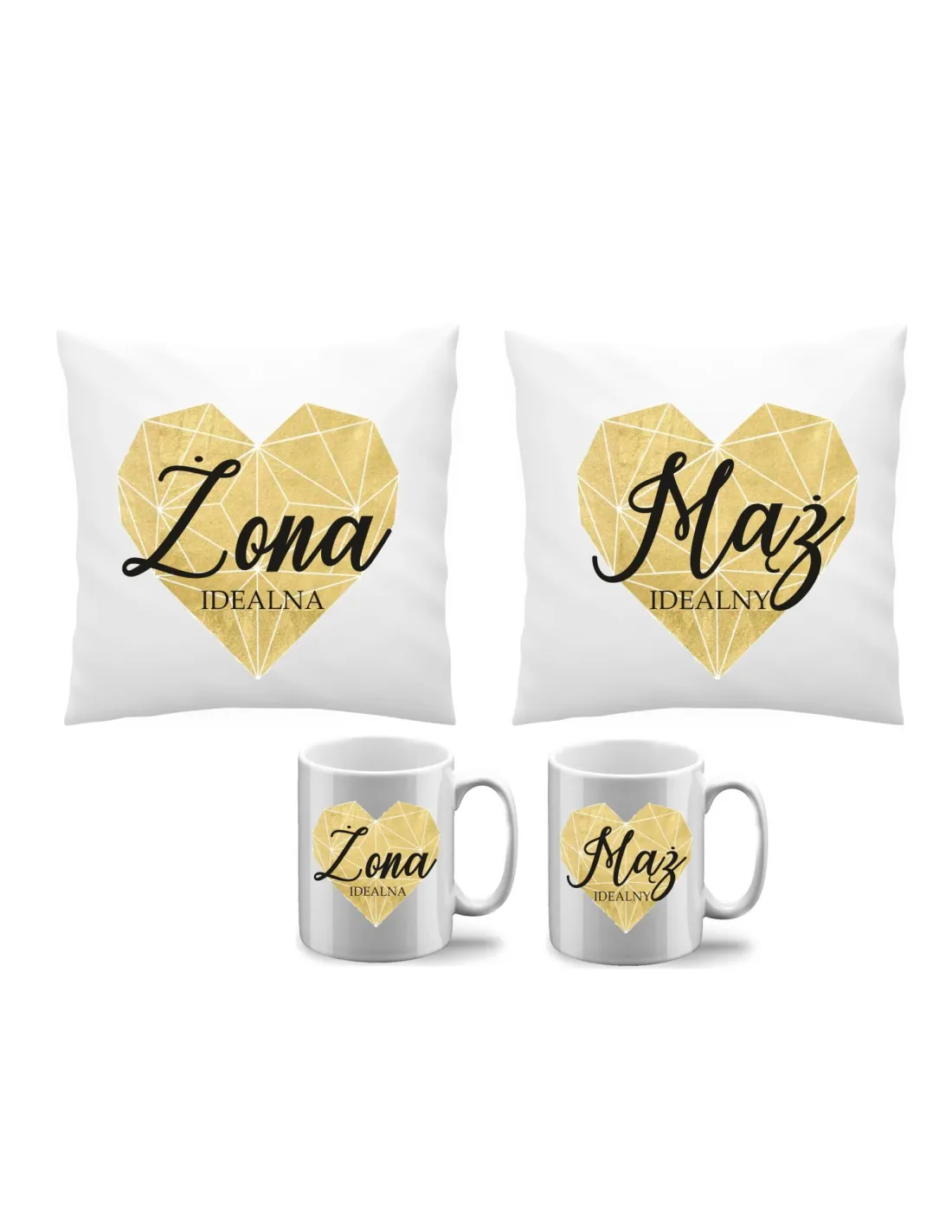 Poduszka kubek zestaw 2+2 żona idealna mąż idealny prezenet na rocznicę ślubu