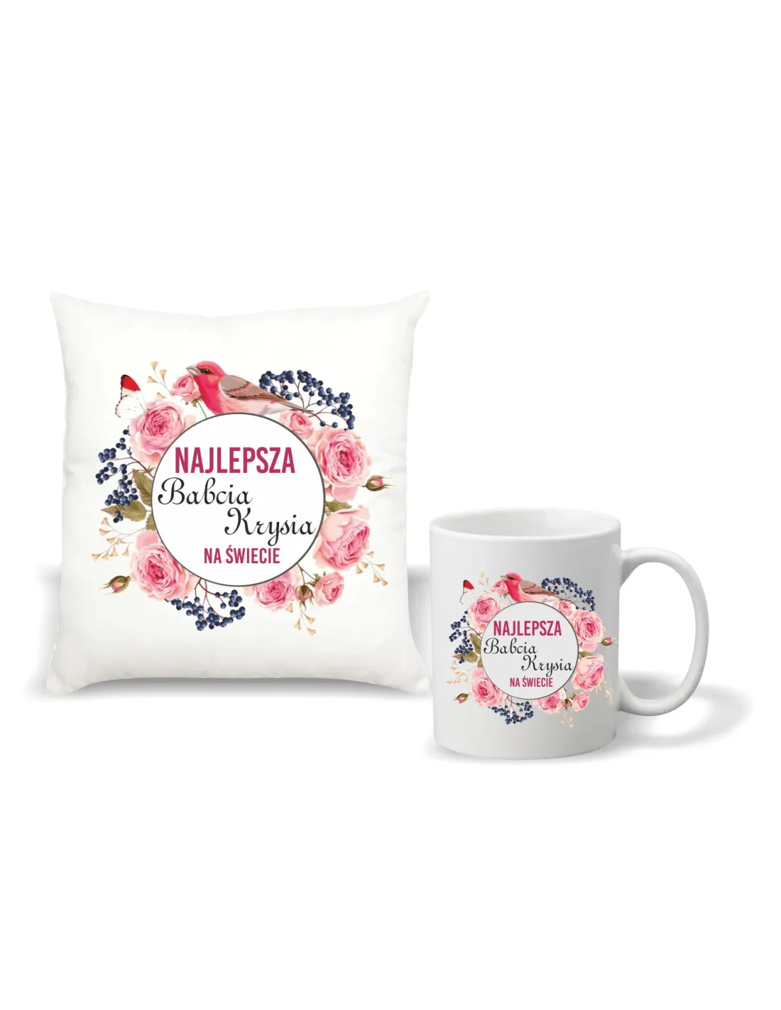 Foto Poduszka kubek Prezent na Dzień Babci i Dziadka zestaw 1+1 z nadrukiem najlepsza babcia imię na świecie