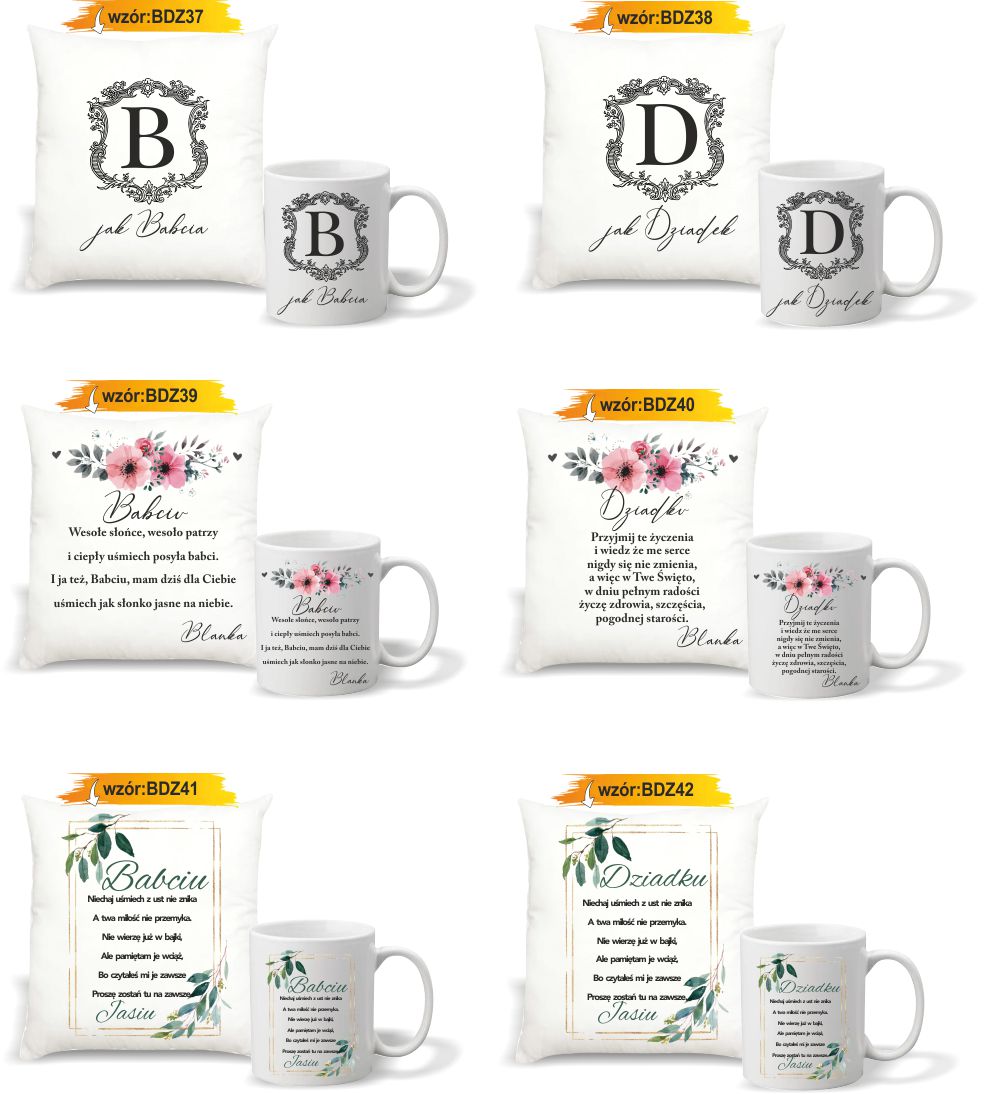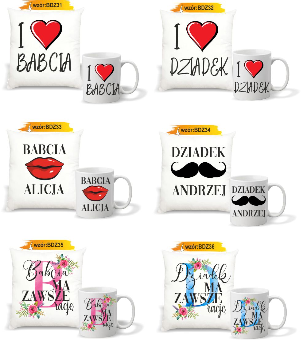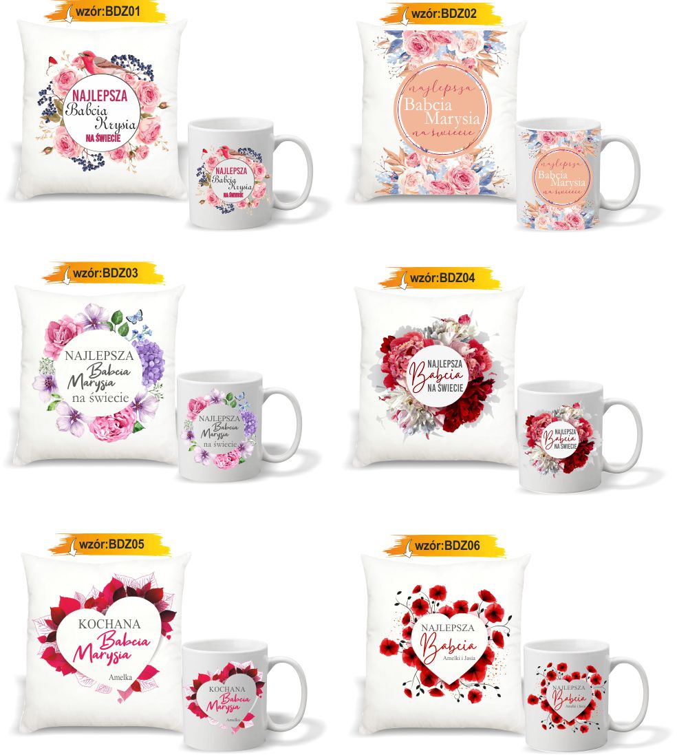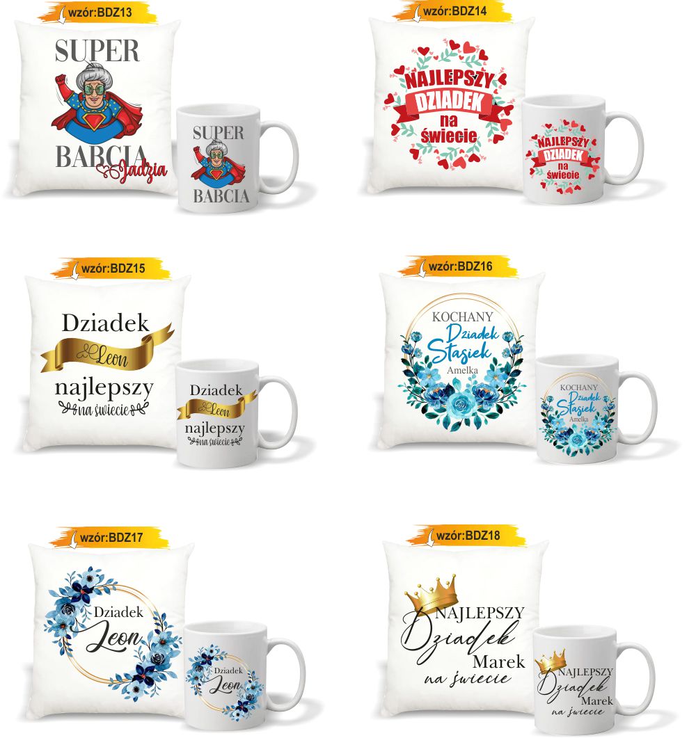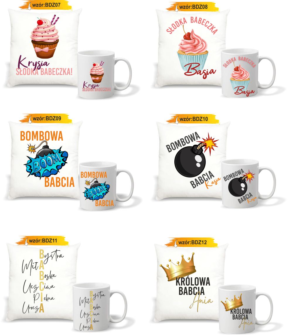 Foto Poduszka kubek Prezent na Dzień Babci i Dziadka zestaw 1+1 z nadrukiem najlepsza babcia imię