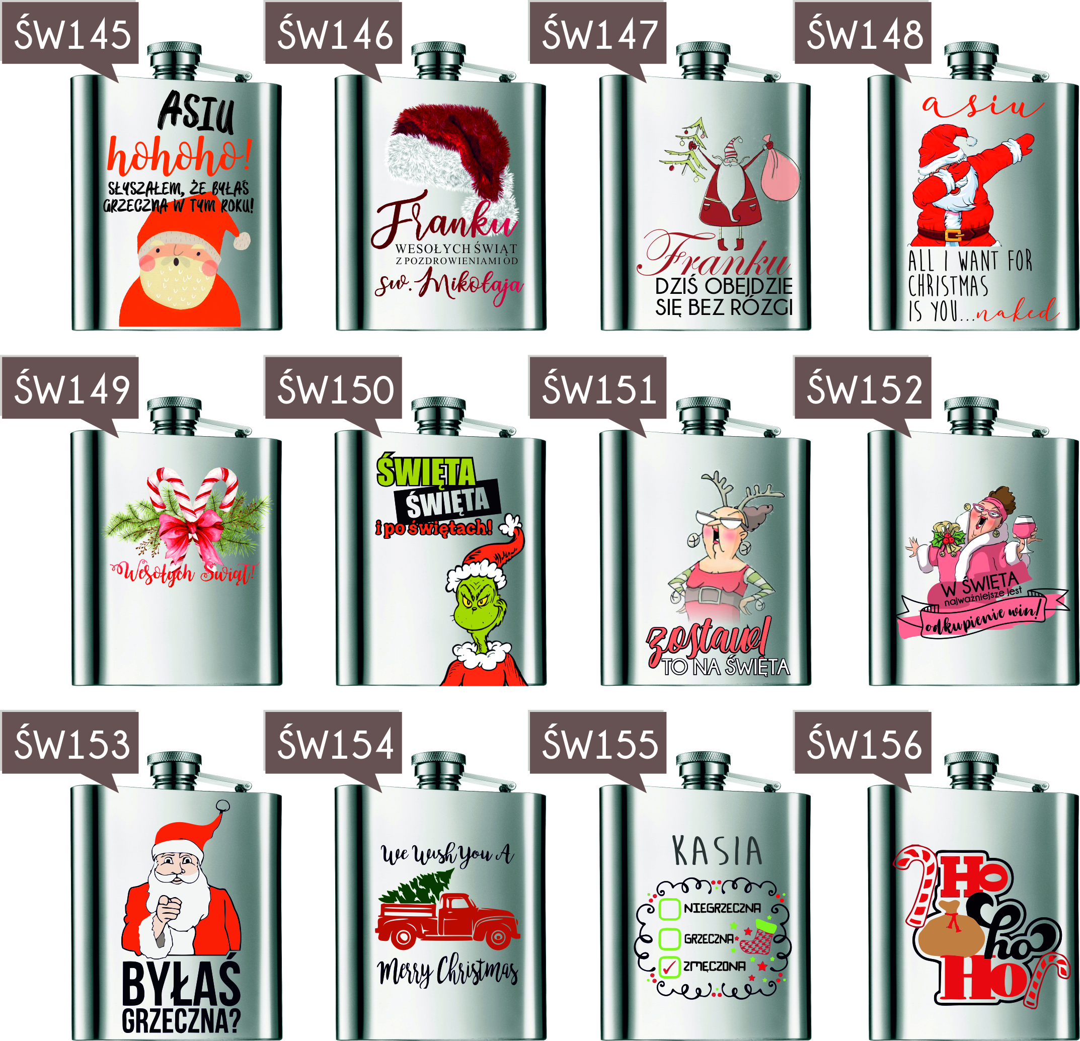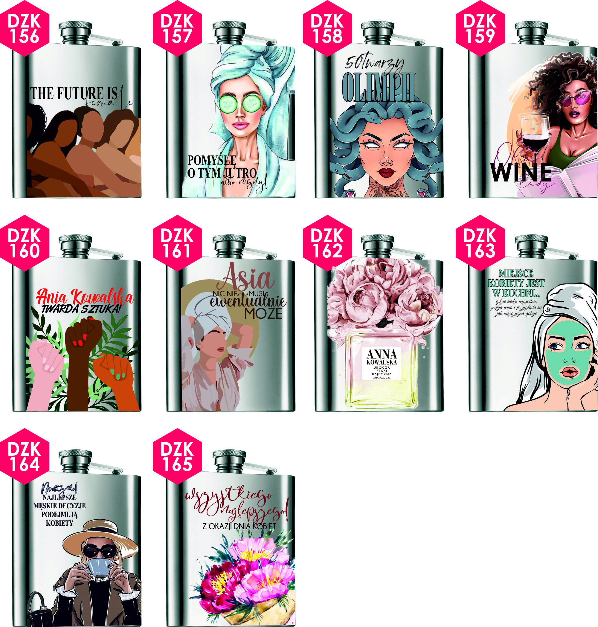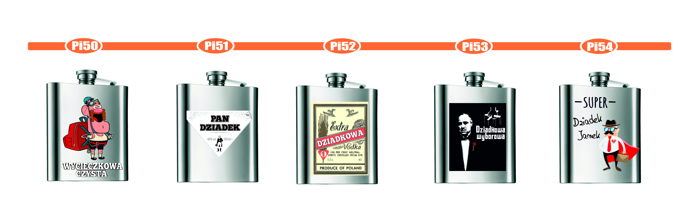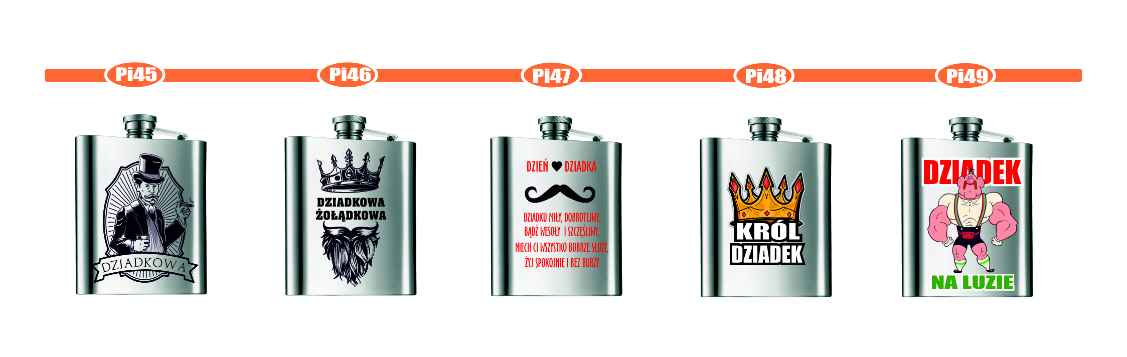 Przykładowe wzory nadruków na piersiówkach :