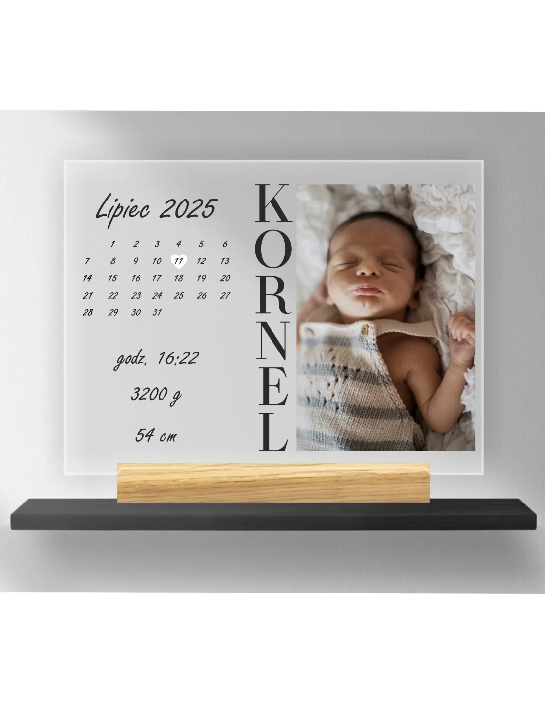 WYJĄTKOWY DZIEŃ ZDJĘCIE DATA IMIĘ wydruk na plexi prezent NARODZINY DZIECKA statuetka tabliczka ramka