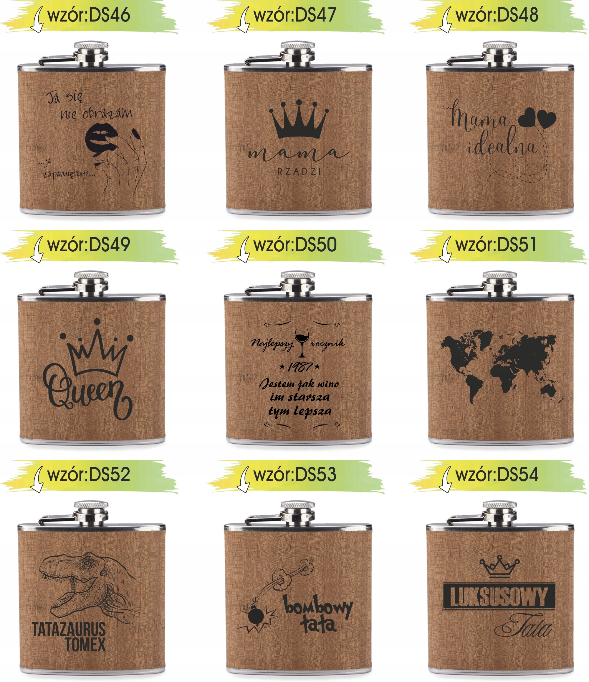 Przykładowe wzory grawerunku na piersiówkach :