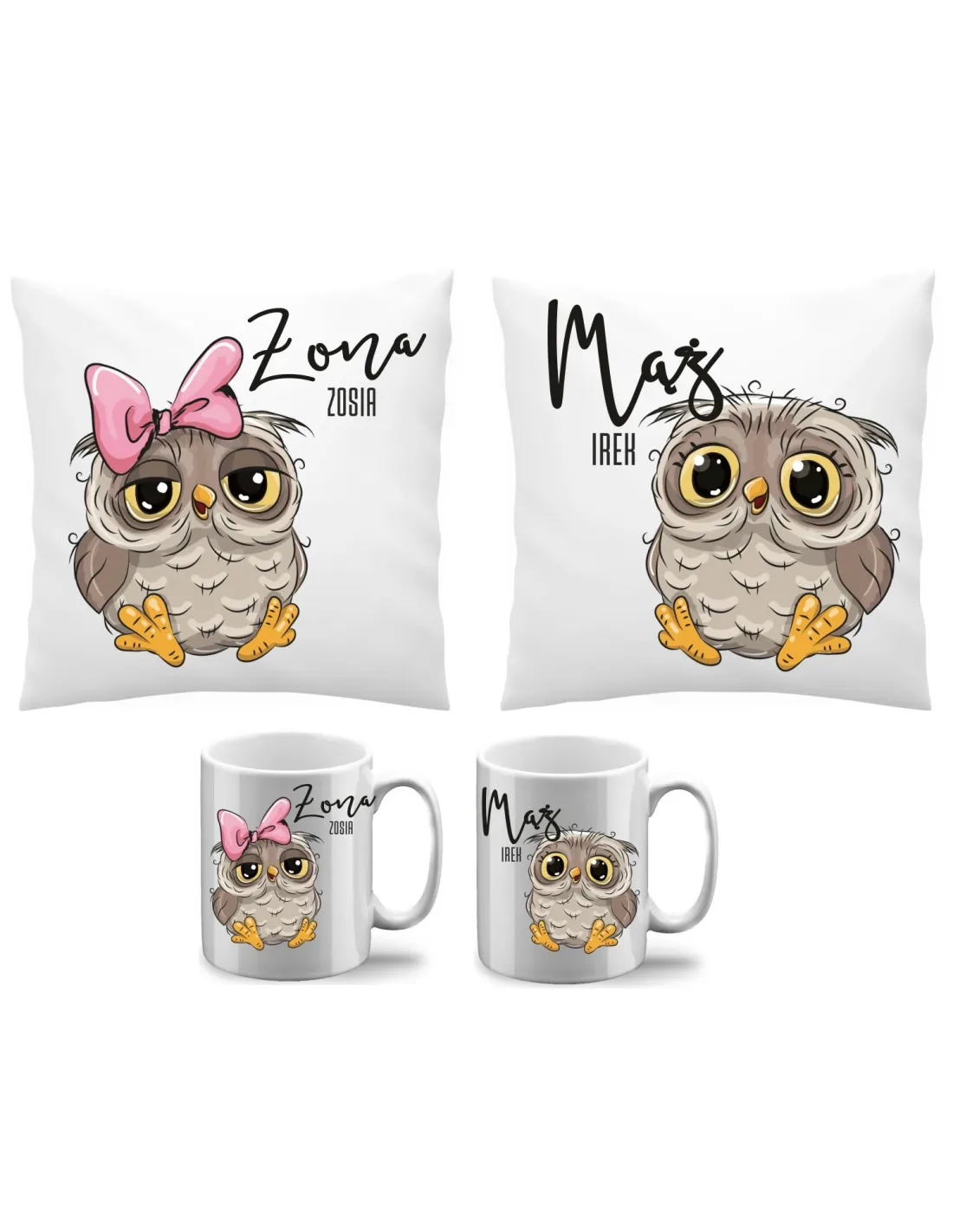 Poduszka kubek zestaw 2+2 mąż i żona imię prezent dla par