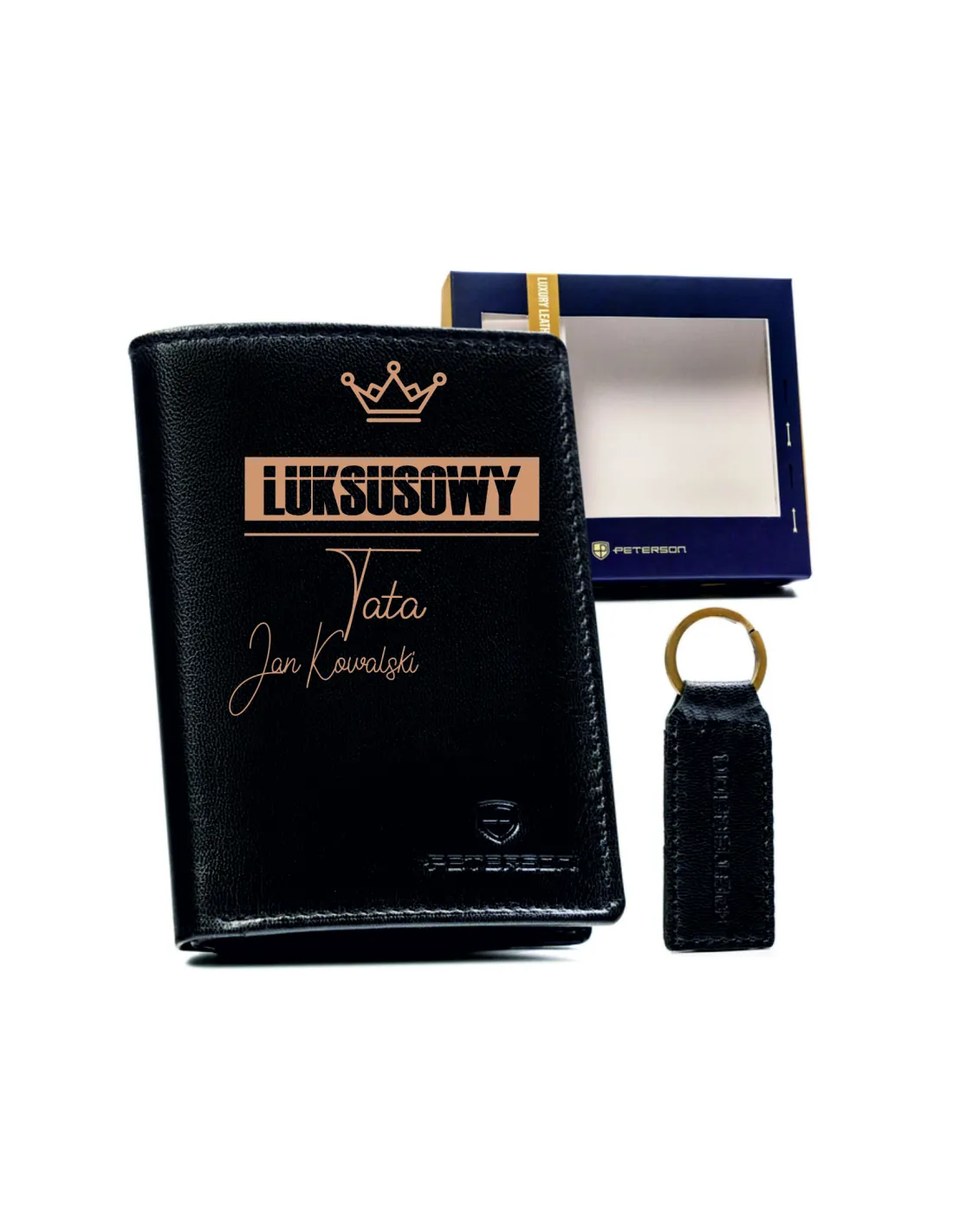Elegancki skórzany portfel z indywidualnym grawerem marki PETERSON® + skórzany brelok