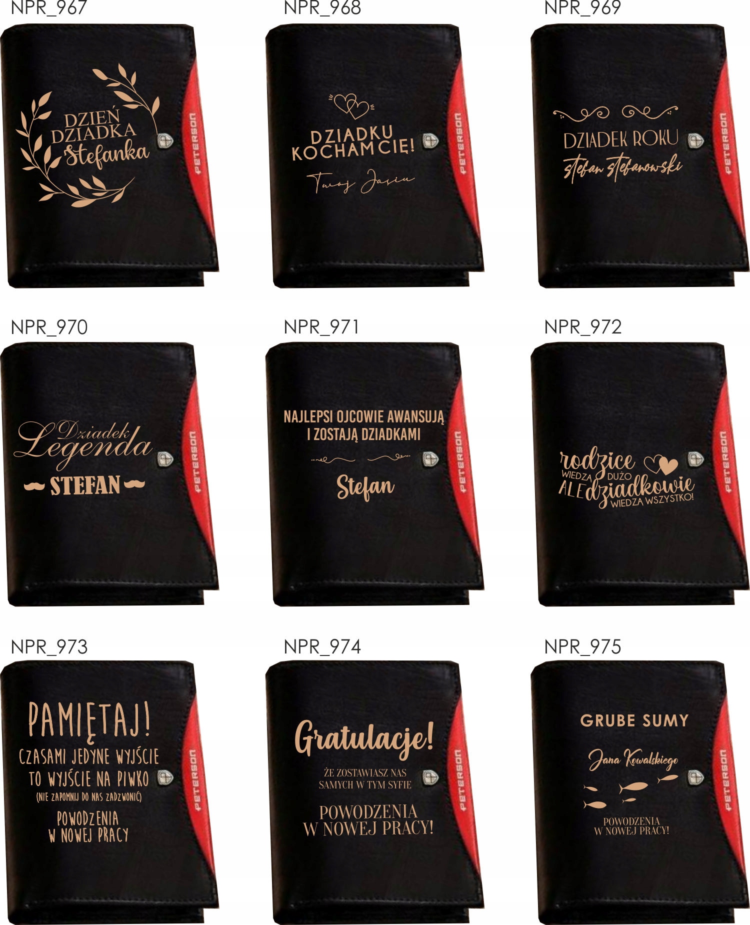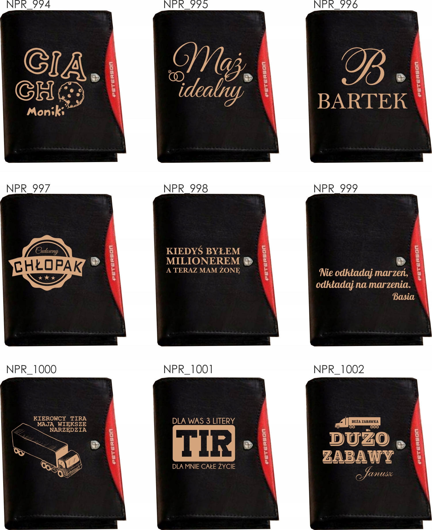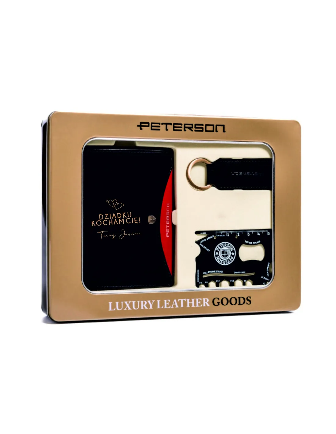 Elegancki skórzany portfel z indywidualnym grawerem marki PETERSON® + skórzany brelok + karta przetrwania