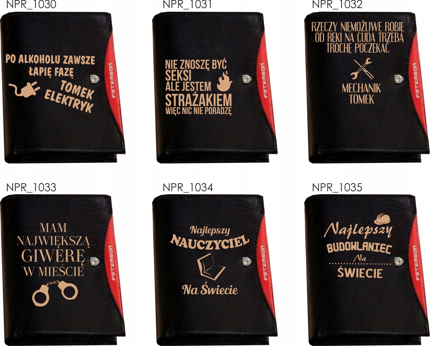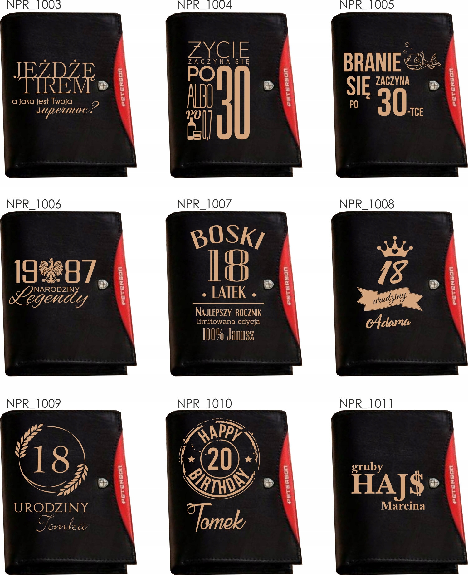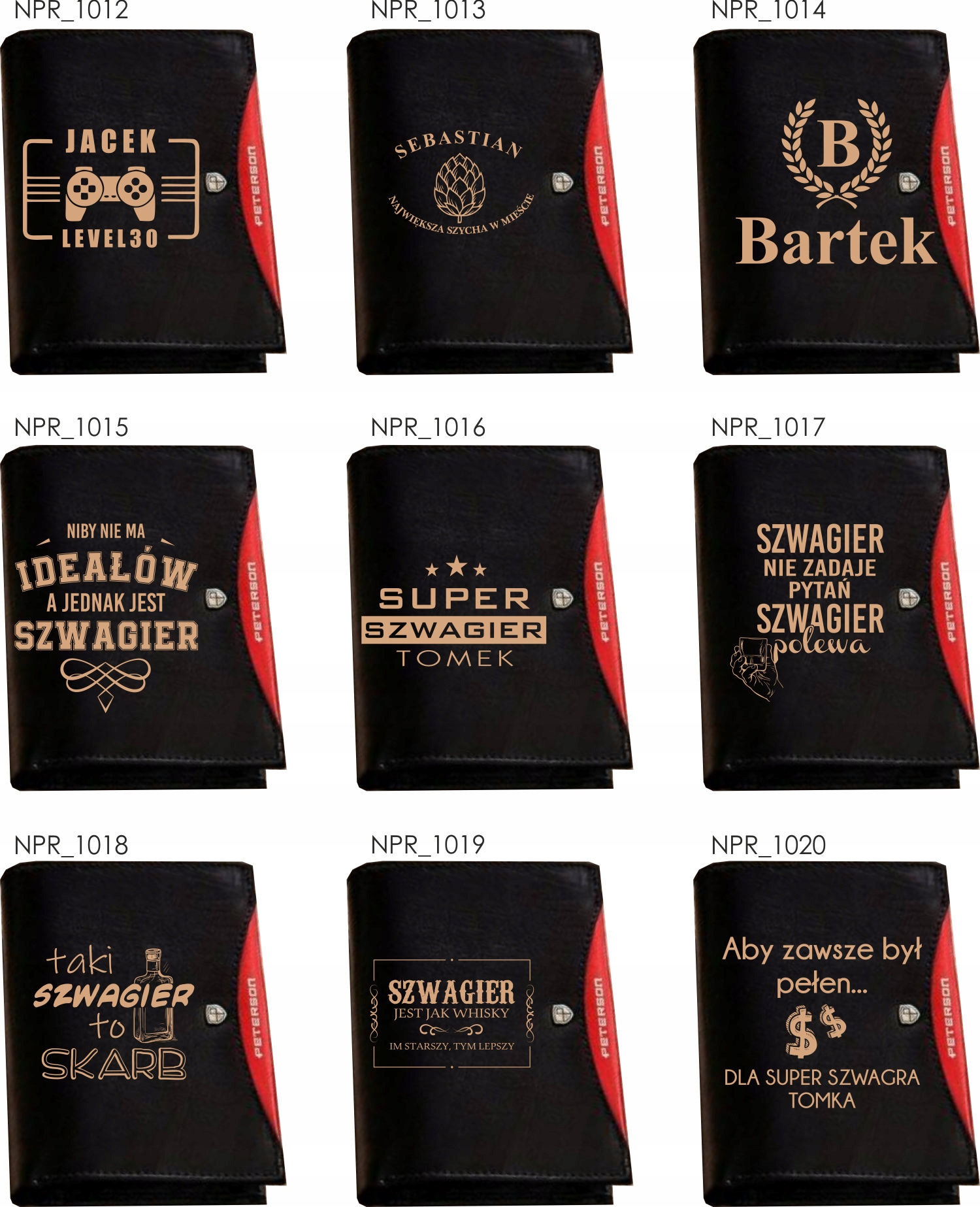 Elegancki skórzany portfel z indywidualnym grawerem marki PETERSON® + skórzany brelok + karta przetrwania