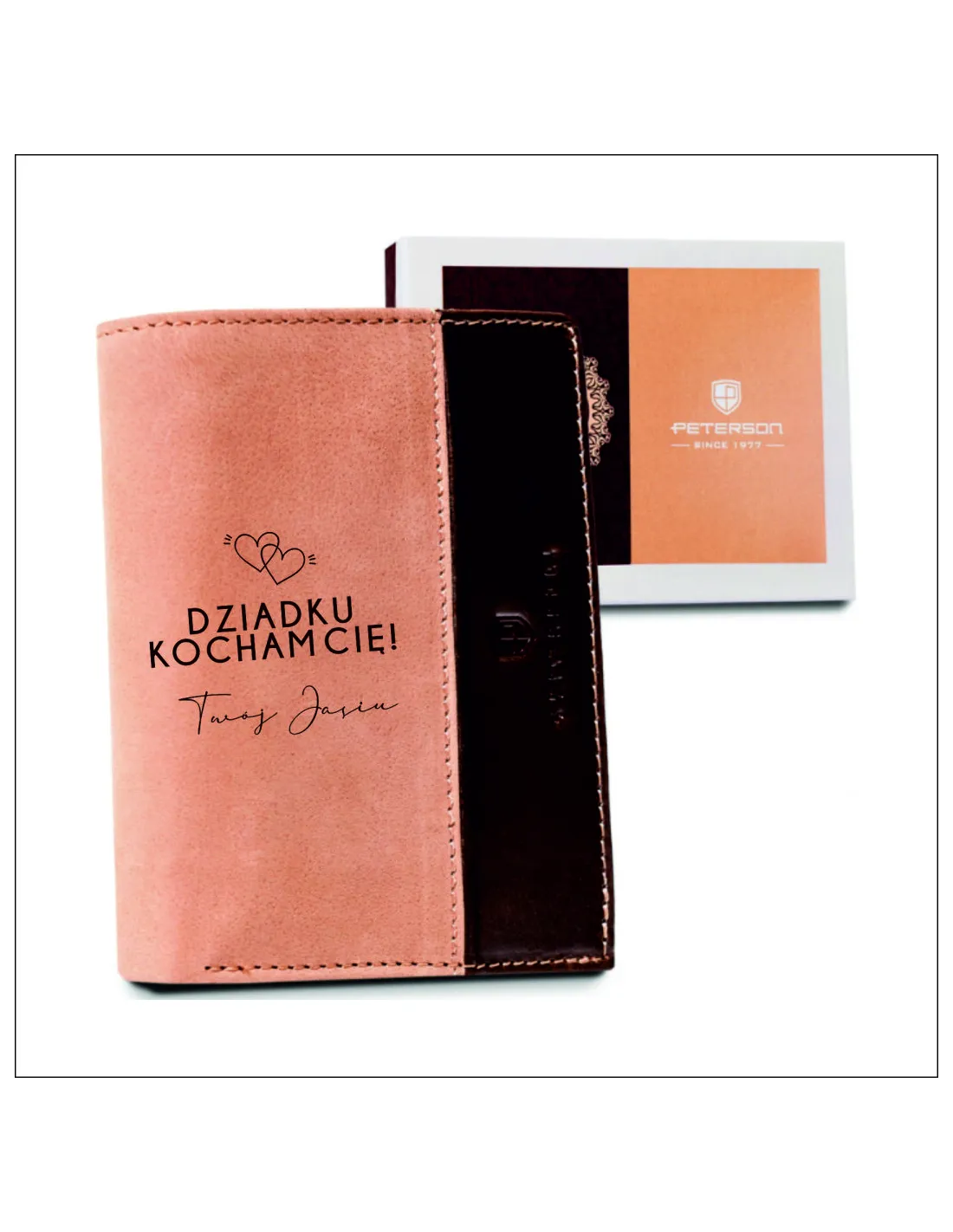 Elegancki skórzany męski portfel PETERSON® z indywidualnym grawerem