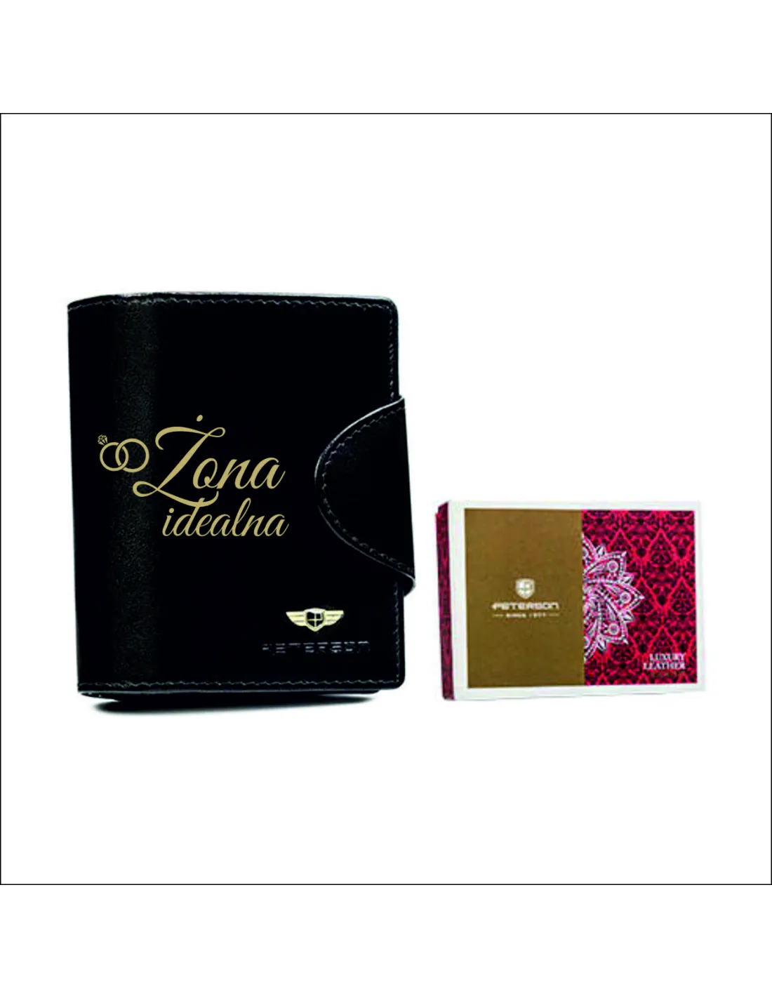 Portfel skórzany czarny damski prezent NA WALENTYNKI DLA ŻONY z GRAWEREM Marka Peterson