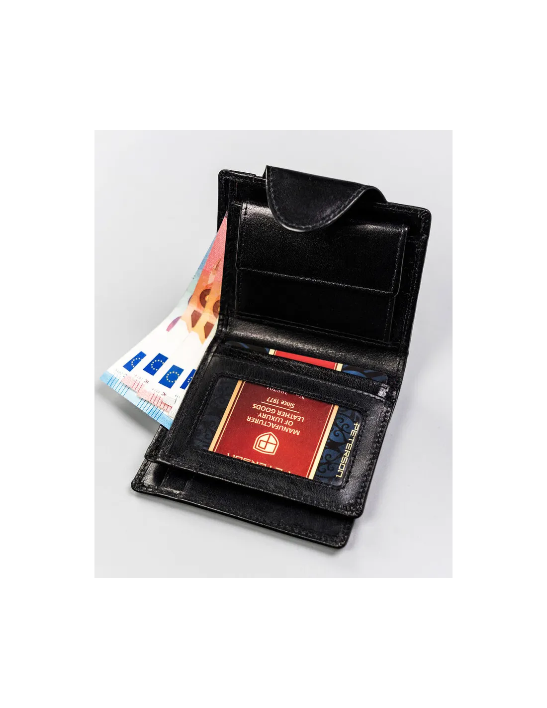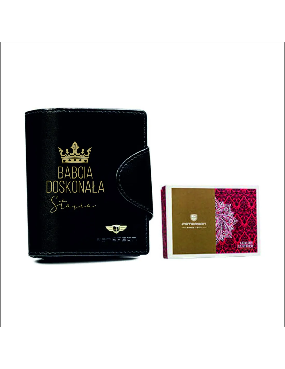 Portfel skórzany czarny damski prezent NA WALENTYNKI DLA ŻONY z GRAWEREM Marka Peterson