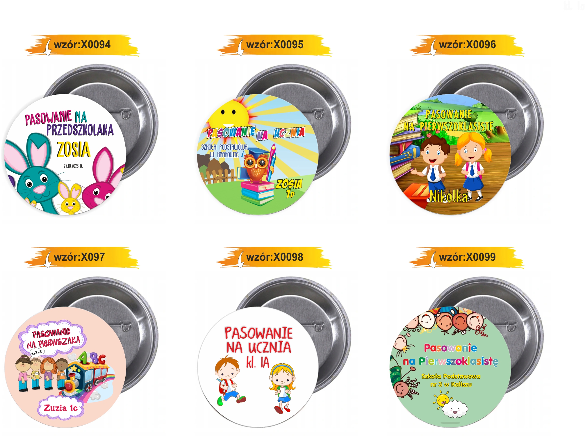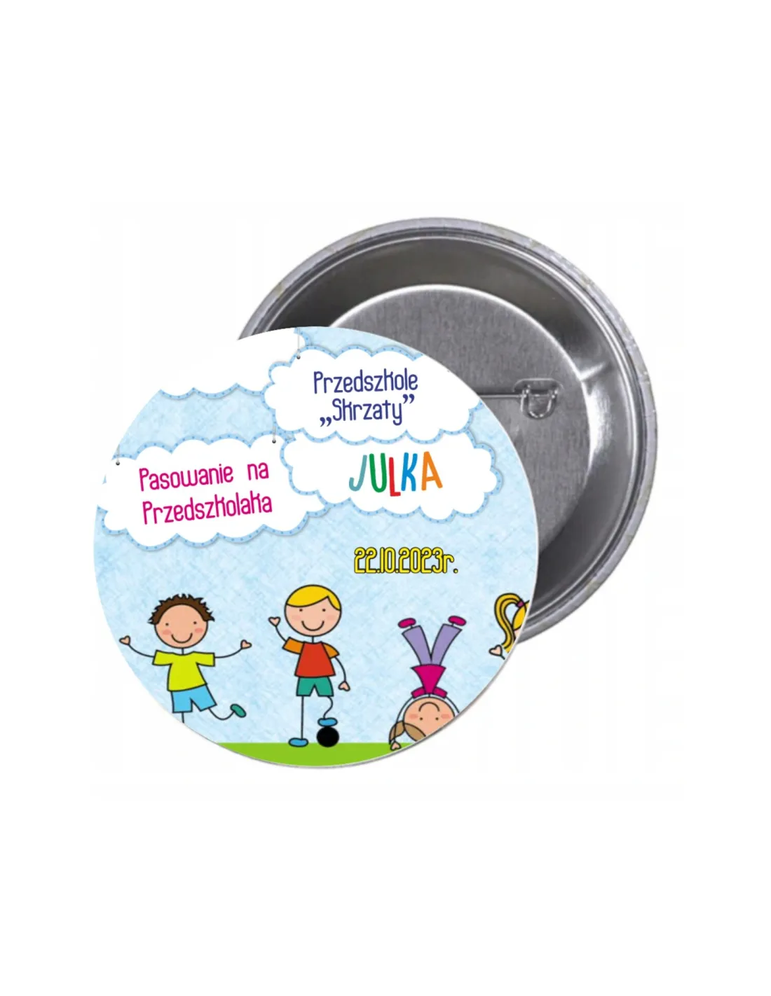Przypinki buttony PRZEDSZKOLE NAZWA IMIĘ znaczki badziki z grafiką