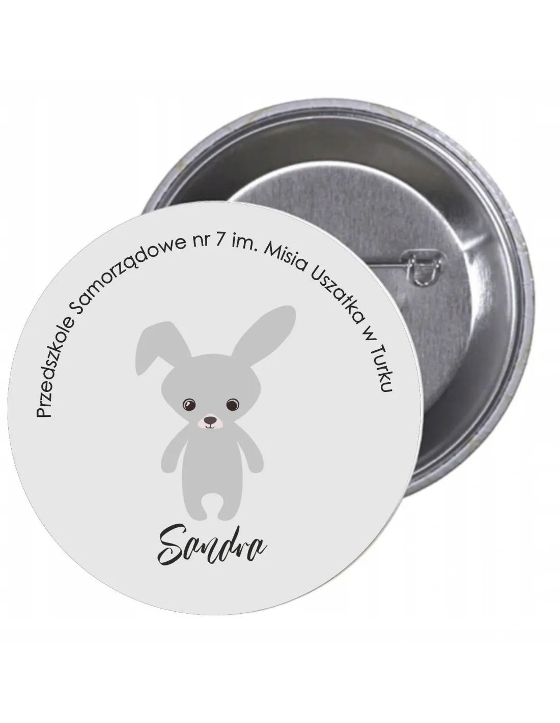 Przypinki buttony PRZEDSZKOLE IMIĘ ZAJĄC znaczki badziki z grafiką