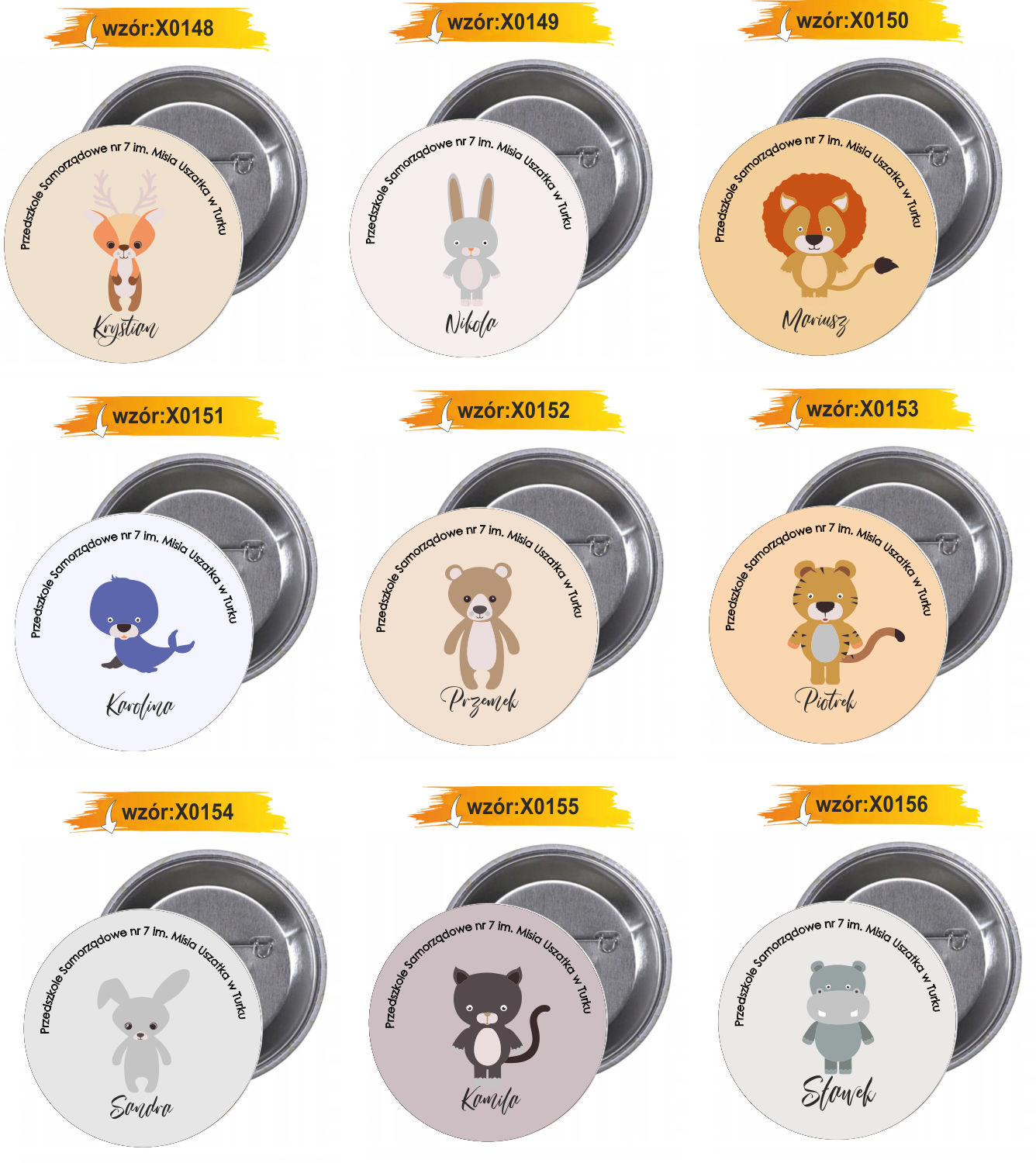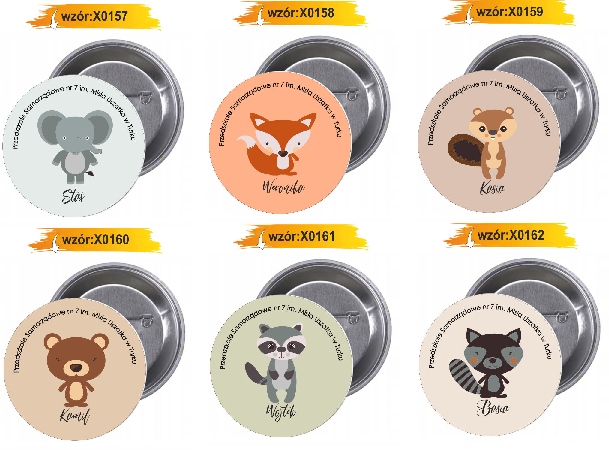 Przypinki buttony PRZEDSZKOLE IMIĘ NIETOPERZ znaczki badziki z grafiką