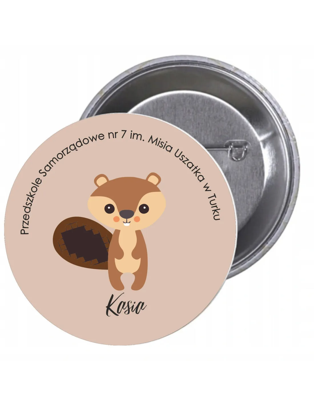 Przypinki buttony PRZEDSZKOLE IMIĘ WIEWIÓRKA znaczki badziki z grafiką