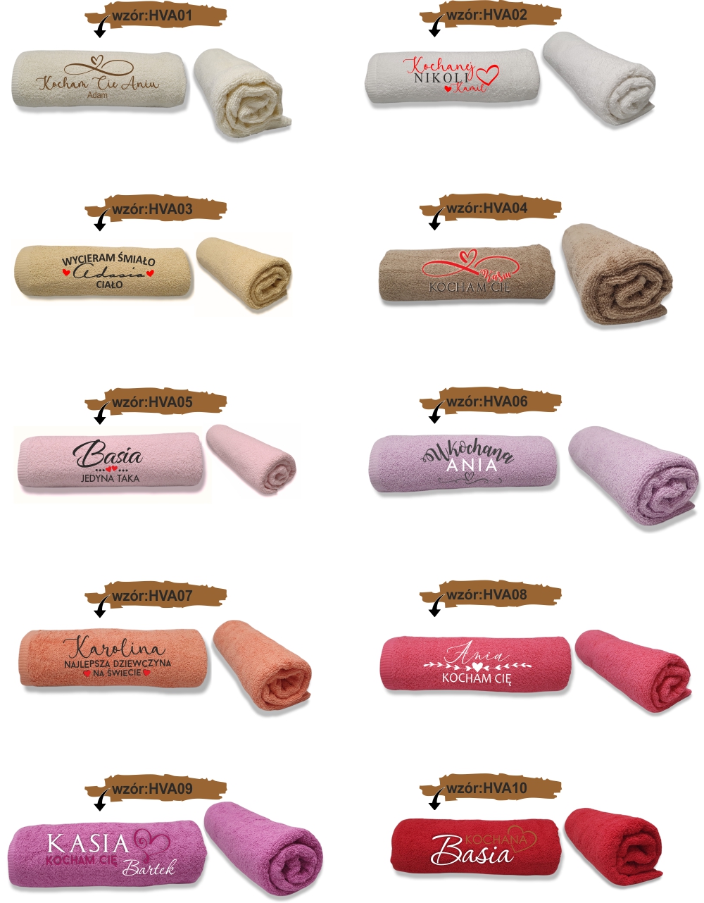 Dostępne wzory haftu na ręcznikach: