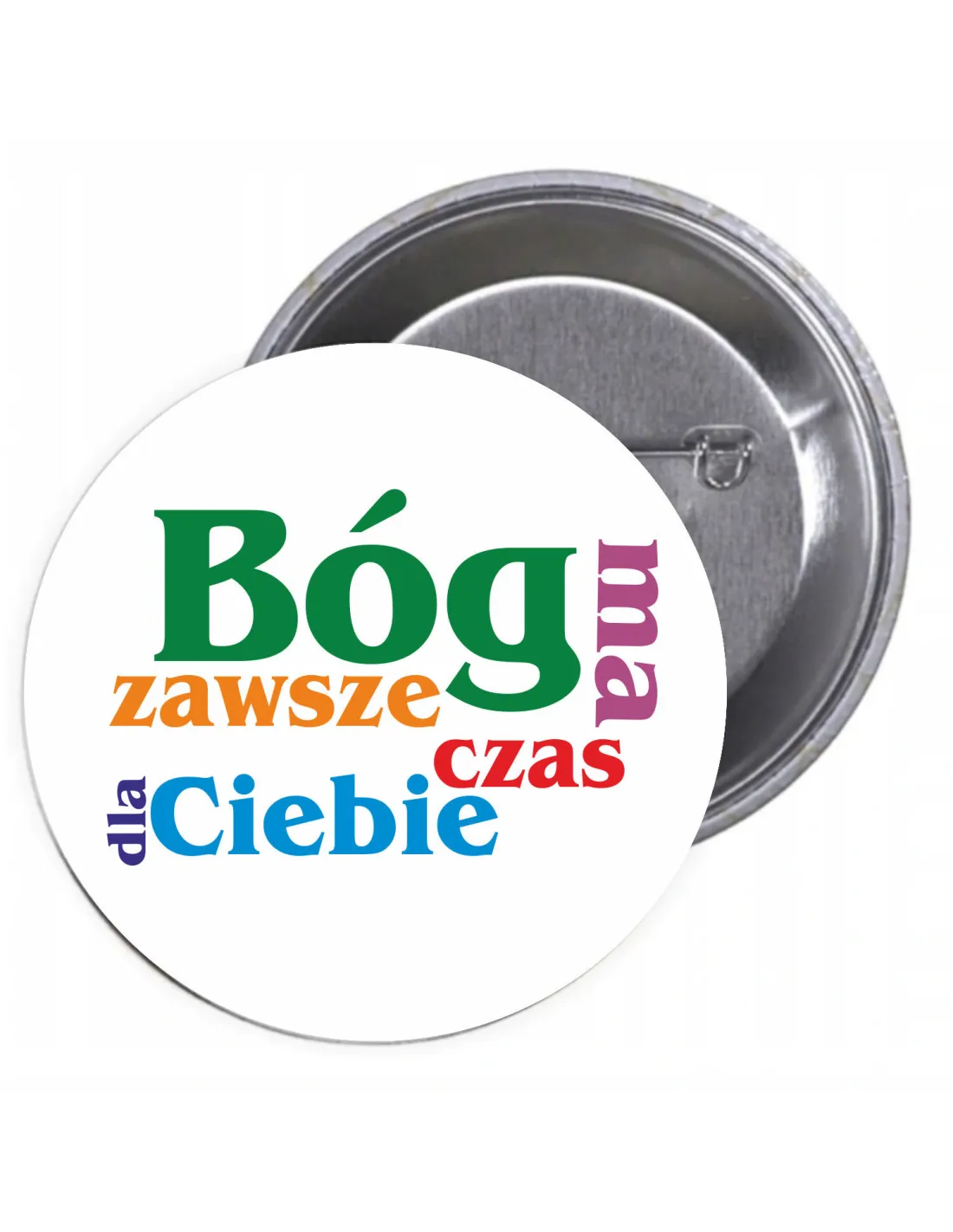 Przypinki buttony RELIGIJNE - BÓG ZAWSZE MA CZAS DLA CIEBIE znaczki badziki z grafiką