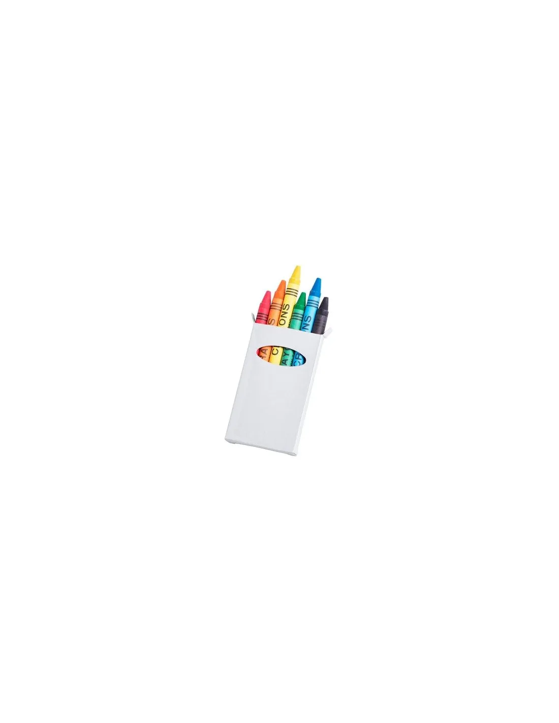 • Zestaw 6 kredek świecowych w pudełku z okienkiem o błyszczącym wykończeniu, opakowanie w 7 kolorach: biały, niebieski, czerwony, czarny. żółty, zielony, pomarańczowy.