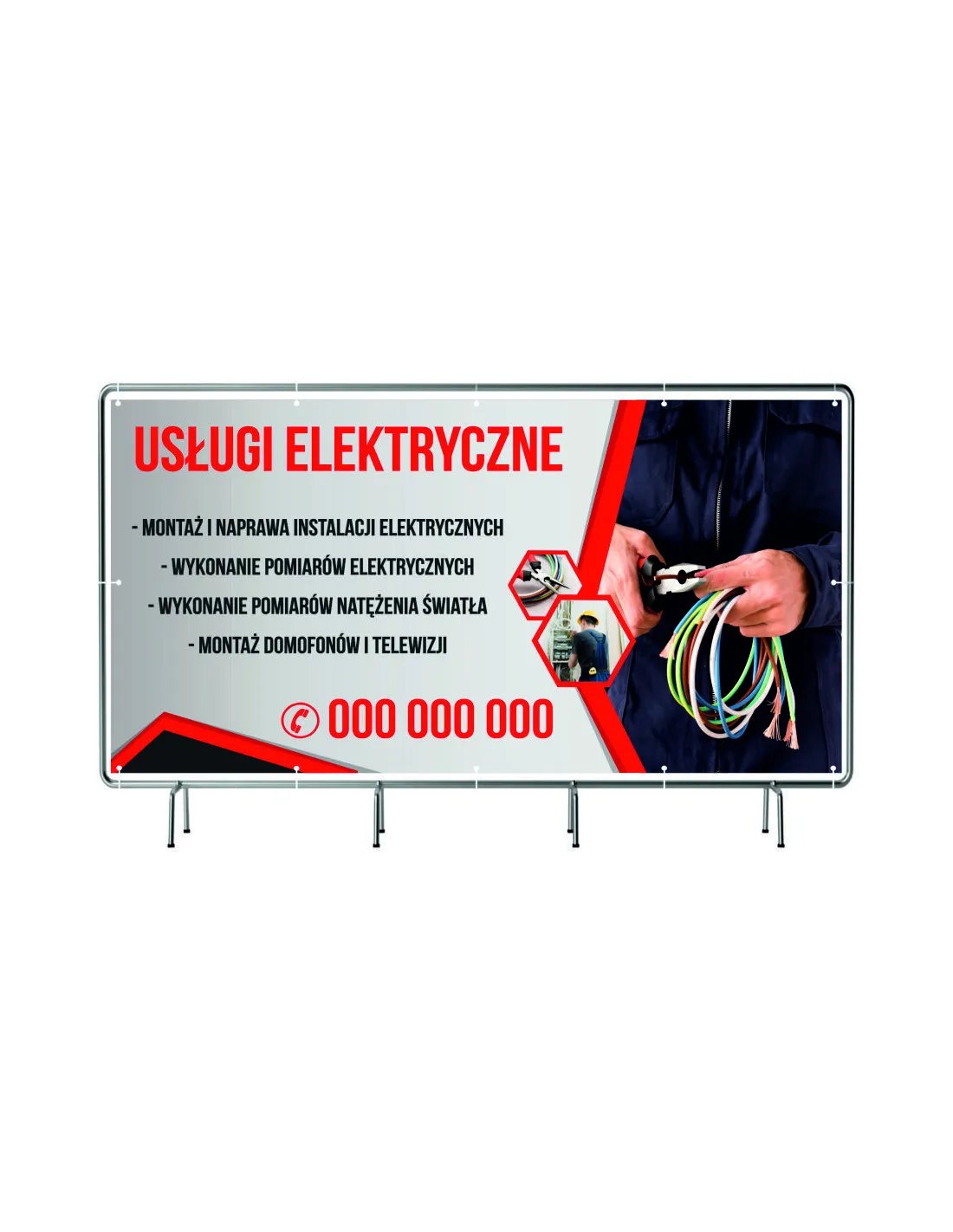 BANER REKLAMOWY na siatce mesh 100x50 cm gotowy projekt USŁUGI ELEKTRYCZNE