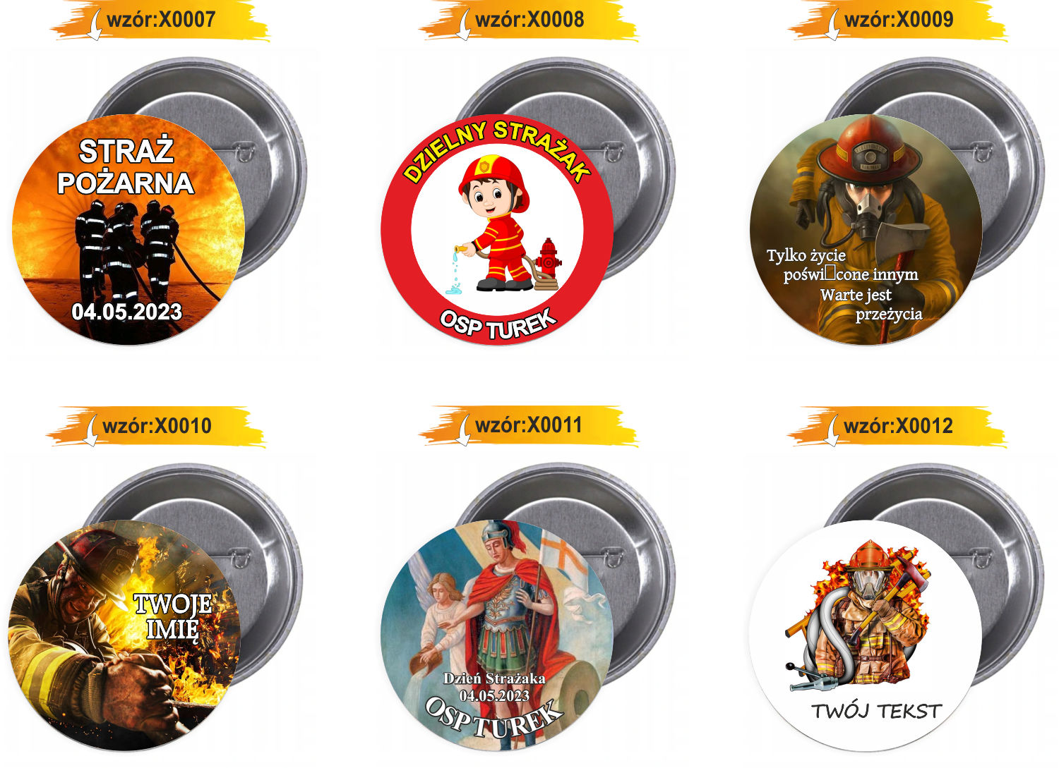 Dostępne gotowe wzory przypinek i buttonów: