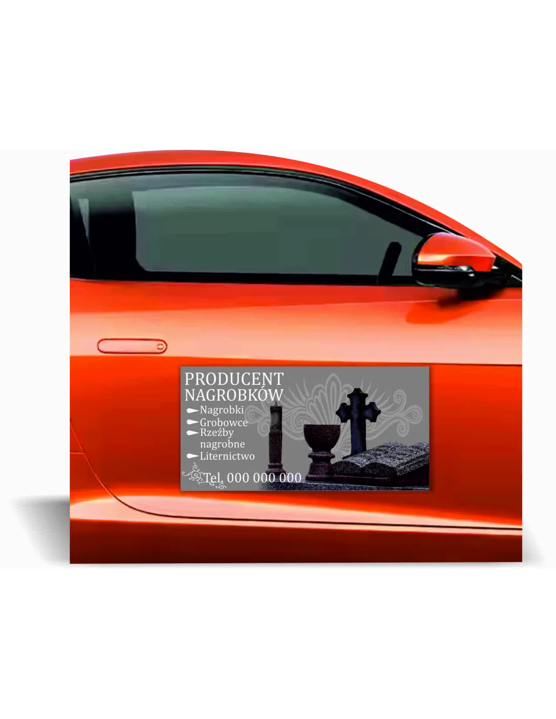 Magnes na samochód reklama magnetyczna 60x30 cm PRODUCENT NAGROBKÓW różne wzory