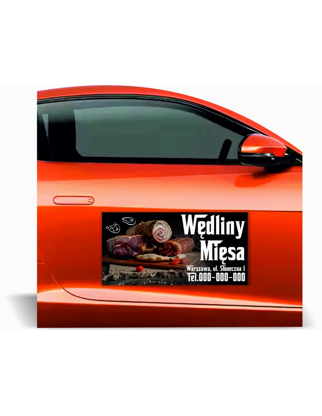 Magnes na samochód reklama magnetyczna 60x30 cm WĘDLINY MIĘSA