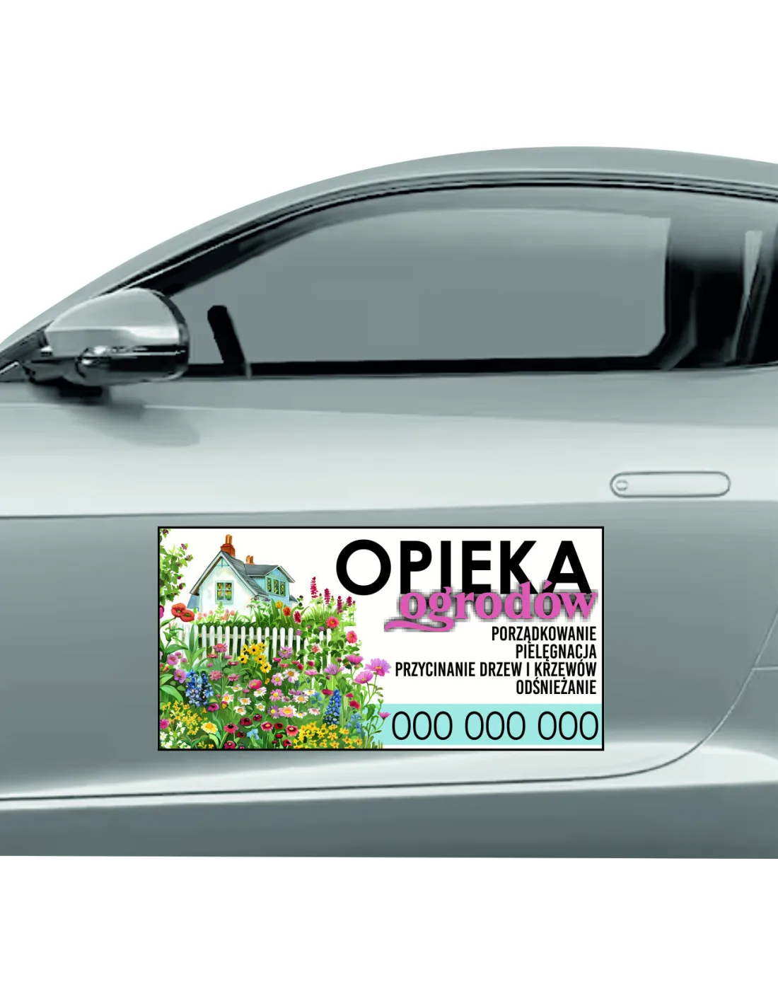Magnes na samochód reklama magnetyczna 60x30 cm opieka ogrodów