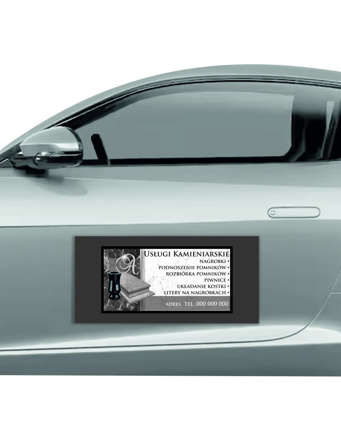 Magnes na samochód reklama magnetyczna 60x30 cm usługi kamieniarskie