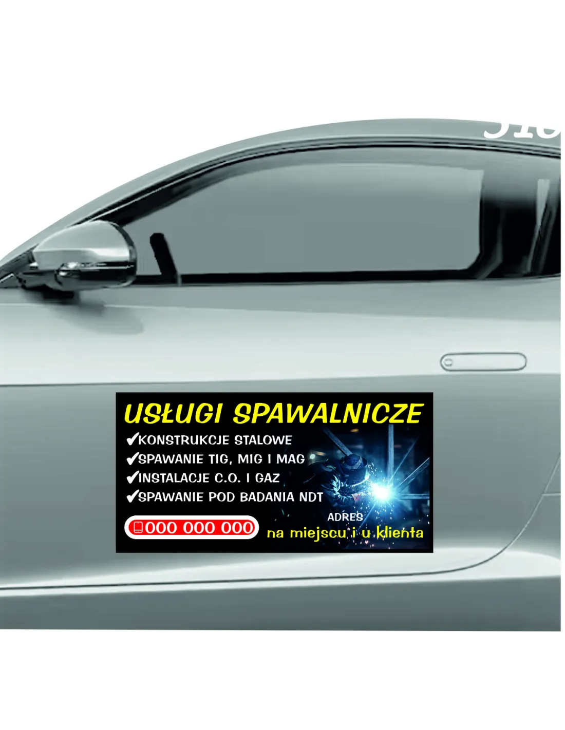 Magnes na samochód reklama magnetyczna 60x30 cm usługi spawalnicze