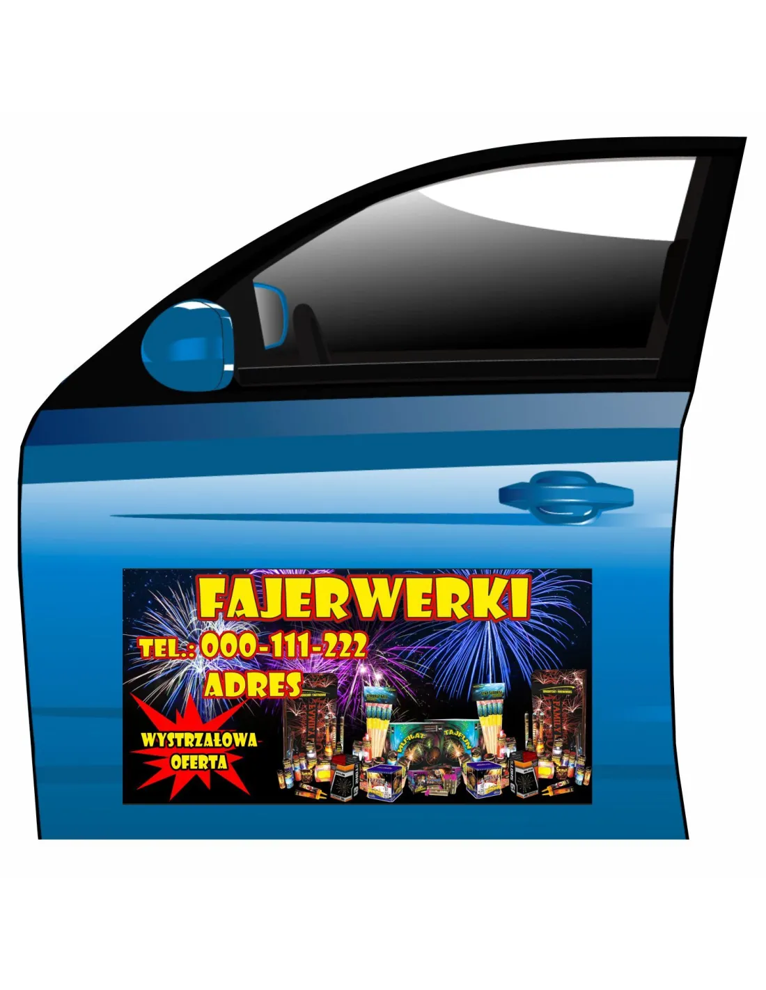 Magnes na samochód reklama magnetyczna fajerwerki