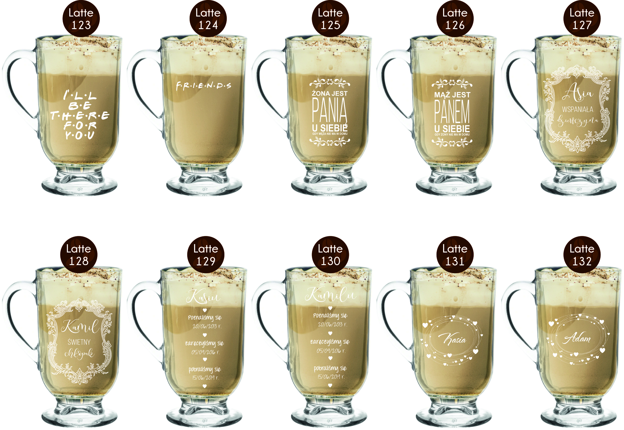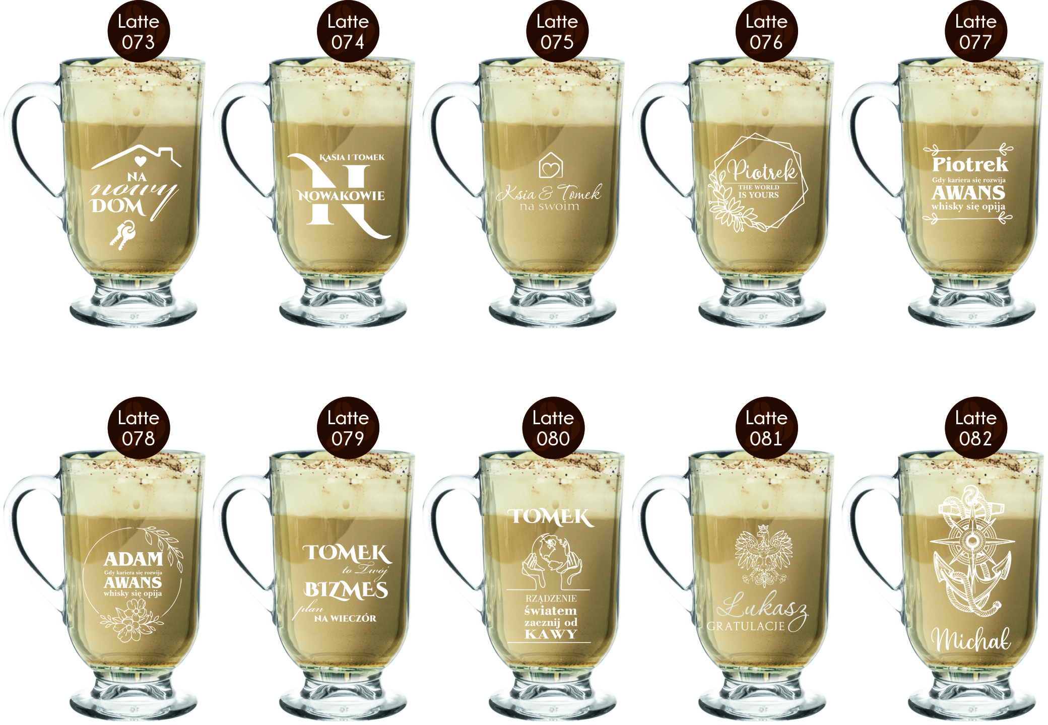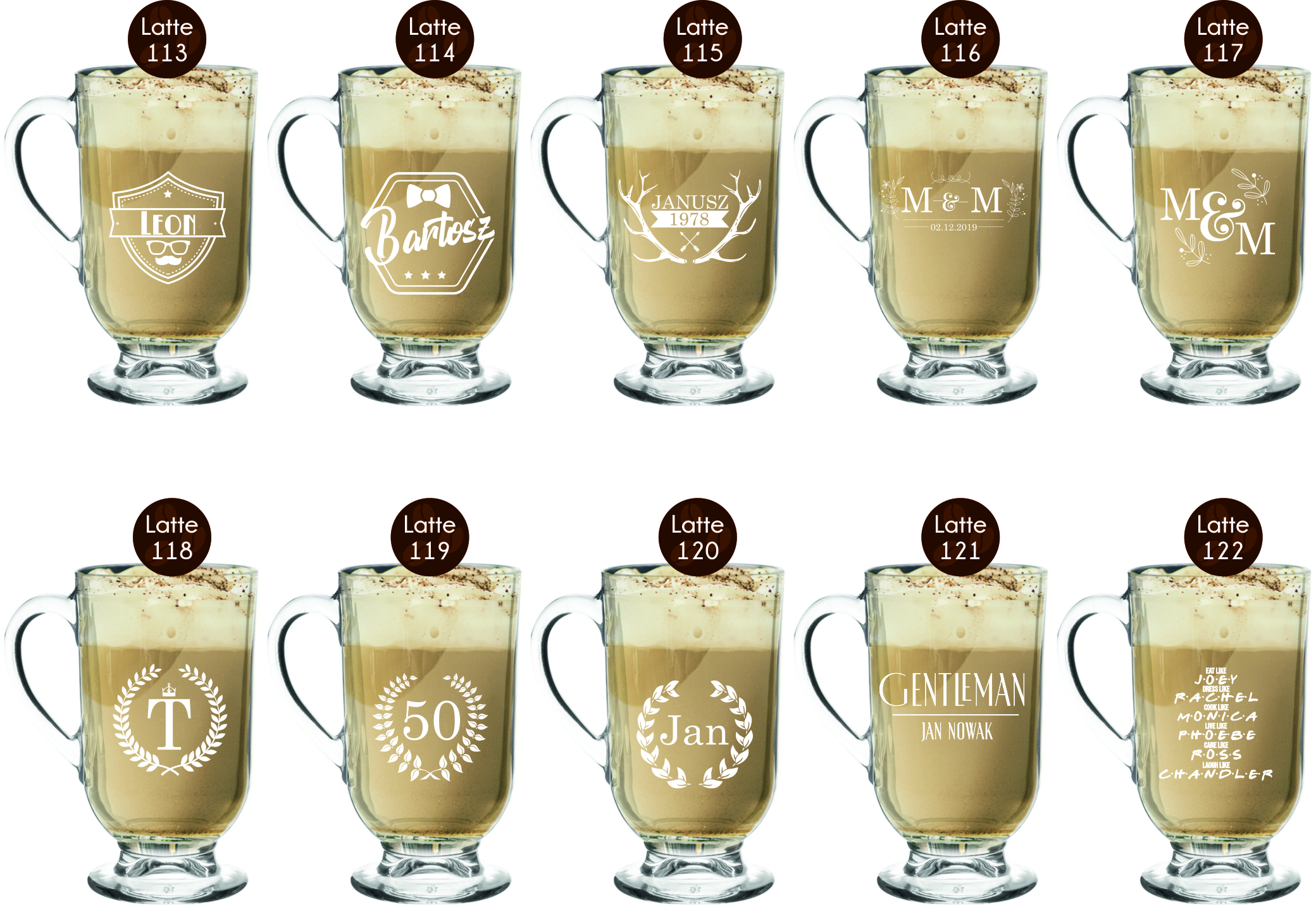Przykładowe wzory szklanek z grawerem: