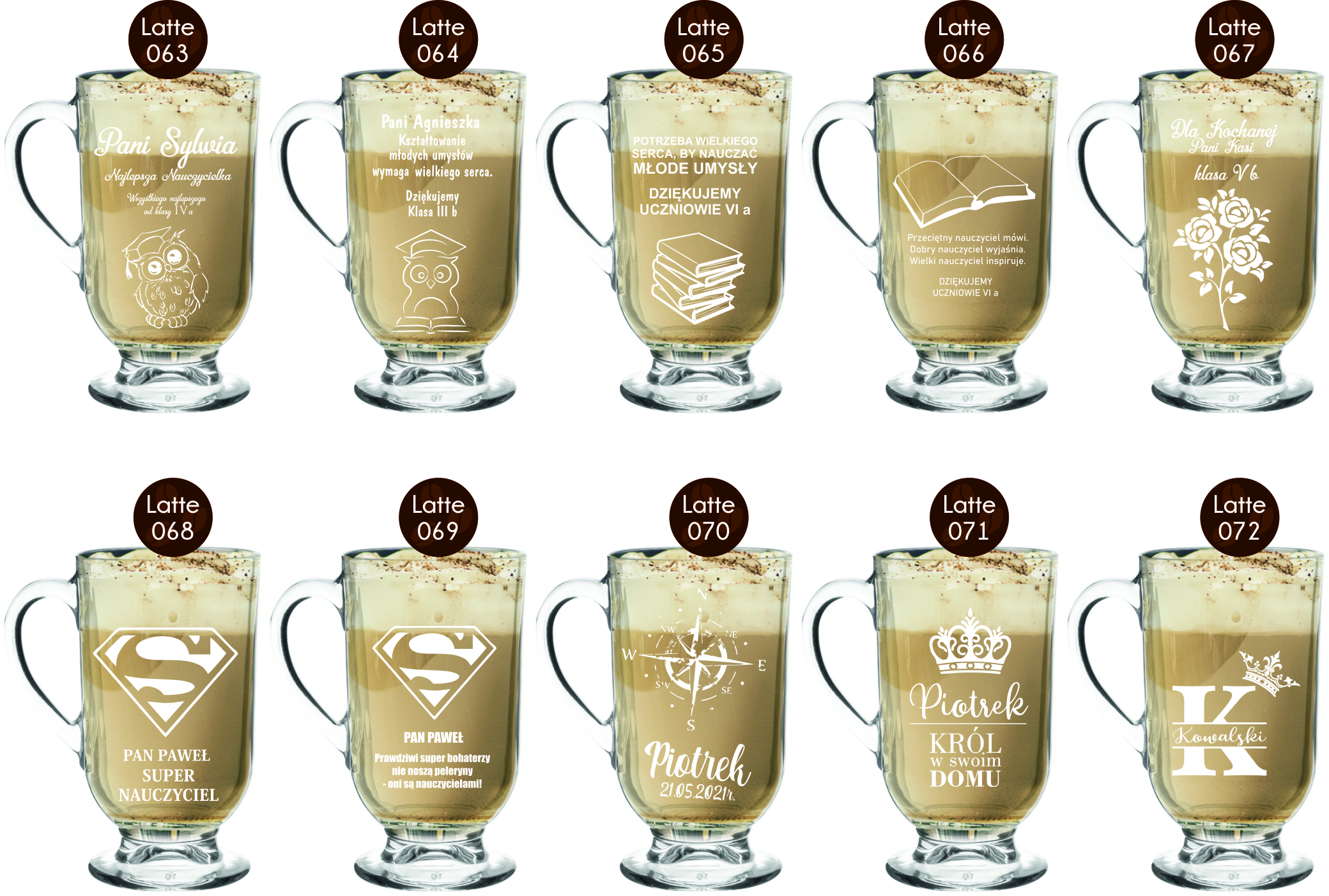 Szklanka kubek do cappucino latte z grawerem na prezent dla nauczyciela podziękowanie