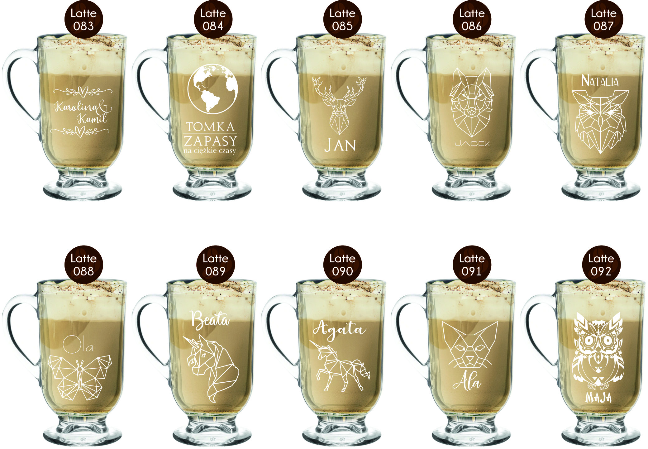 TYLKO U NAS PEŁNE SERIE PRODUKTOWE - Z TĄ SAMĄ GRAFIKĄ DOSTĘPNE KUBKI - KUFLE - SZKLANKI - WAZONY ORAZ INNE WYROBY SZKLANE