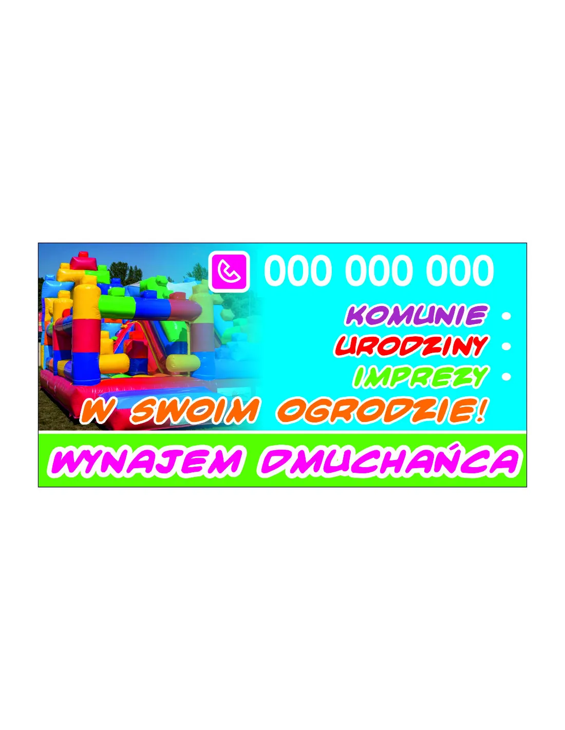 Szyld reklamowy REKLAMA 100x50 cm WYNAJEM DMUCHAŃCA
