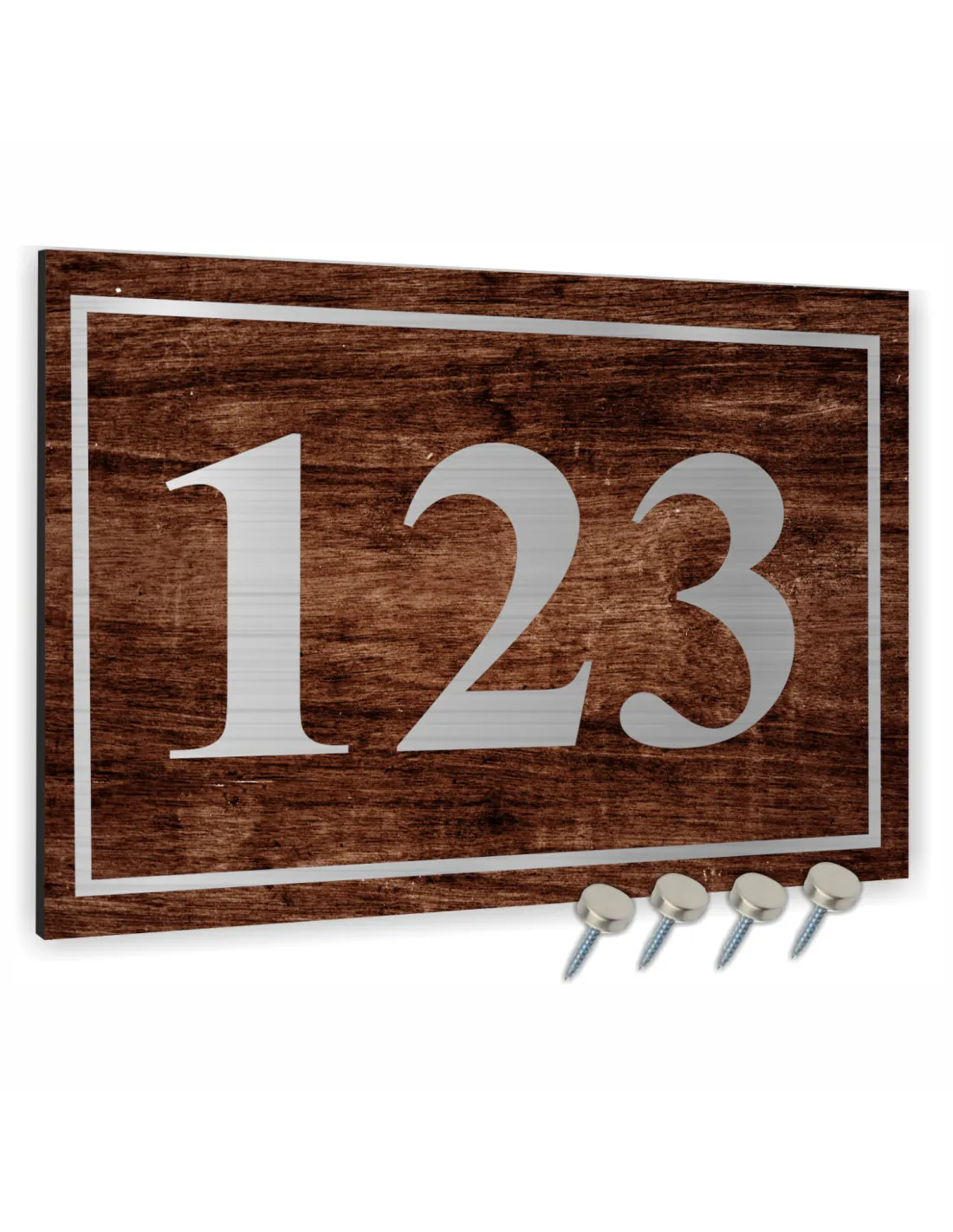 TABLICA Z NUMEREM DOMU adresowa z motywem drewna 20x15cm dibond