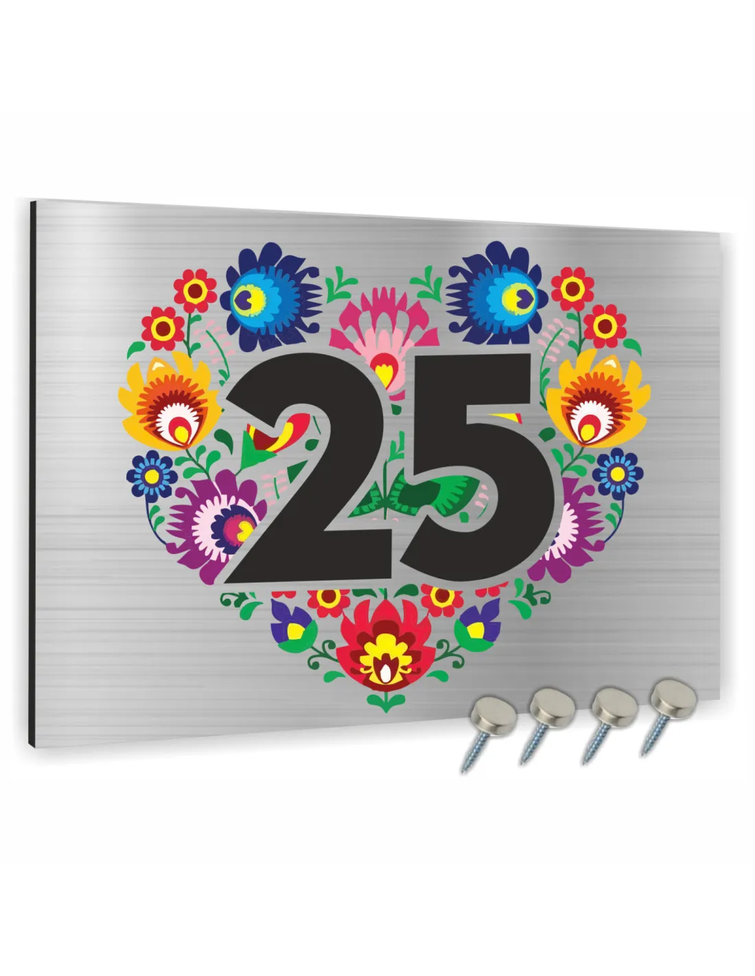 NUMER NA BUDYNEK Tabliczka ALUMINIUM  element ludowy w sercu 20x15cm dibond