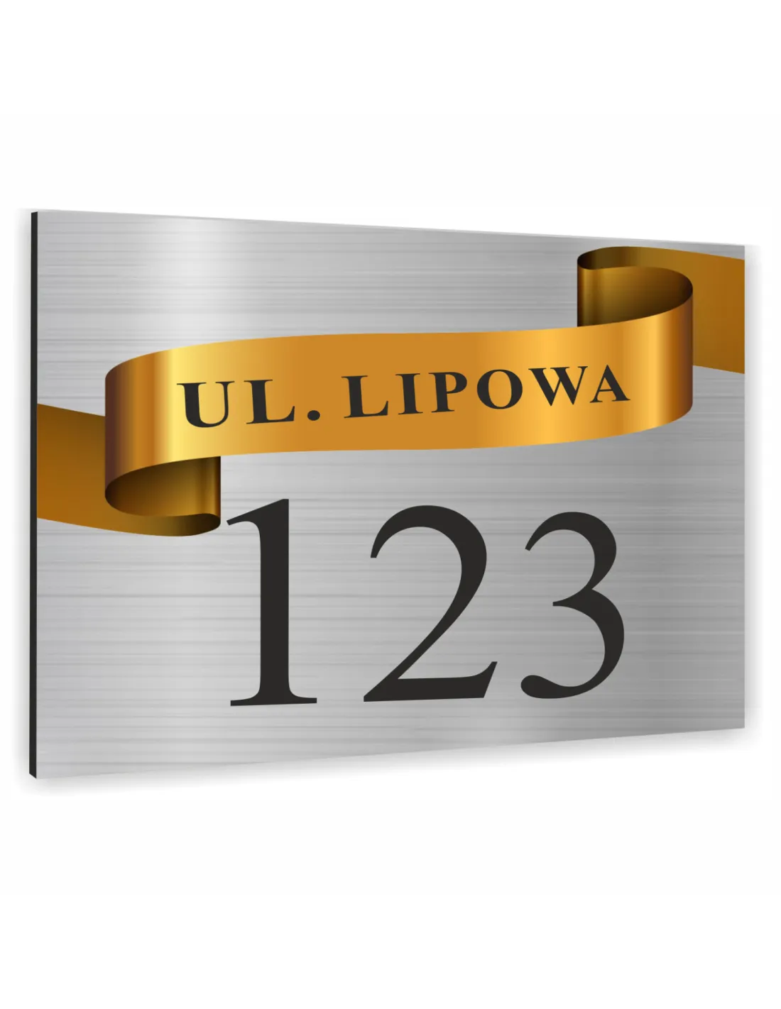 TABLICA ADRESOWA METAL NUMER DOMU POSESJI ze złotym elementem 30x20 cm dibond
