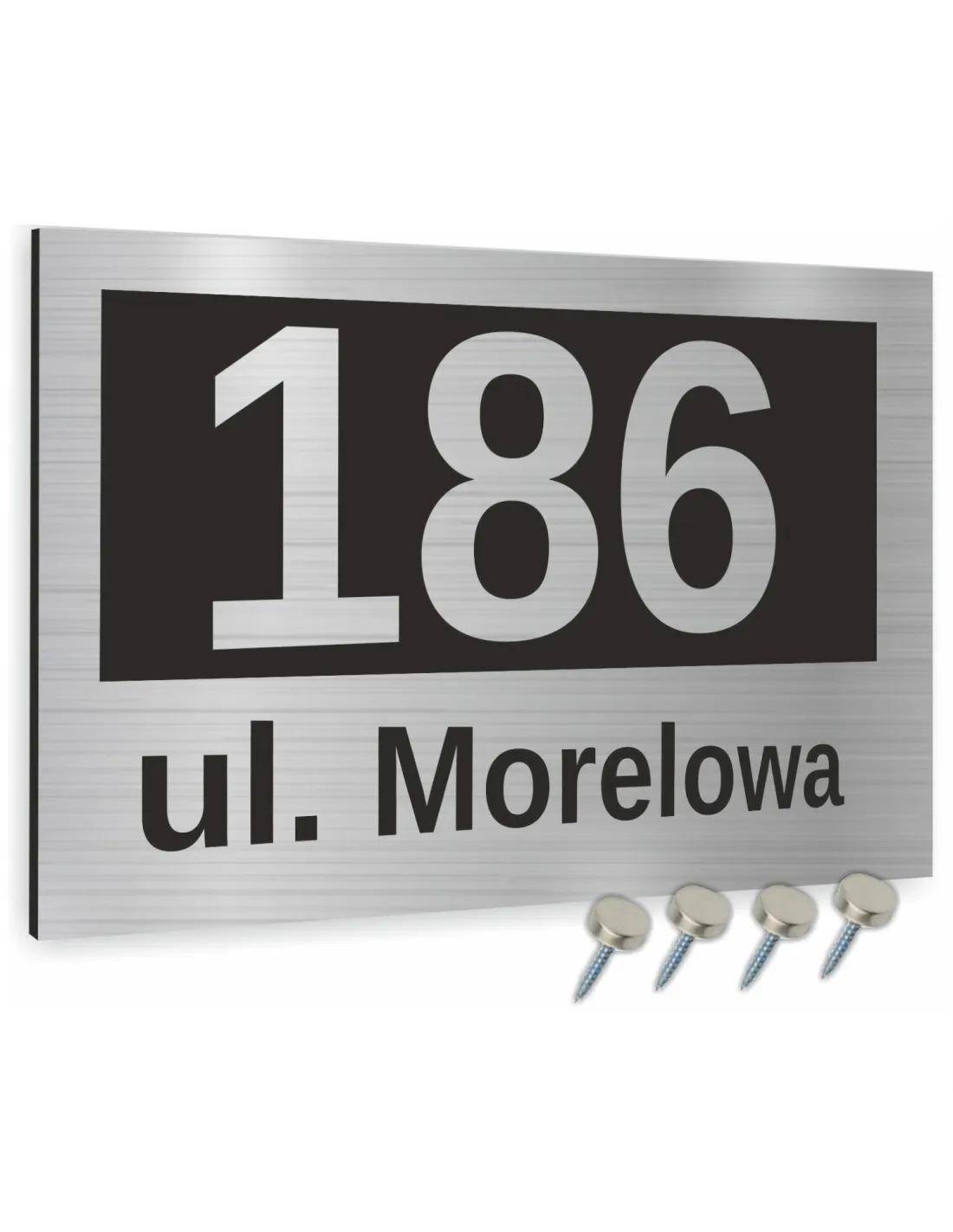 Tabliczka ADRESOWA Aluminiowa SREBRNA Numer domu dibond 20x30cm
