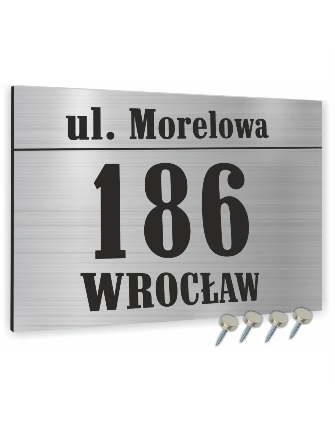 ELEGANCKA TABLICZKA ADRESOWA Z WŁASNYMI DANYMI WYKONANA Z PŁYTY DIBOND Z ELEGANCKIM I TRWAŁYM NADRUKIEM UV.