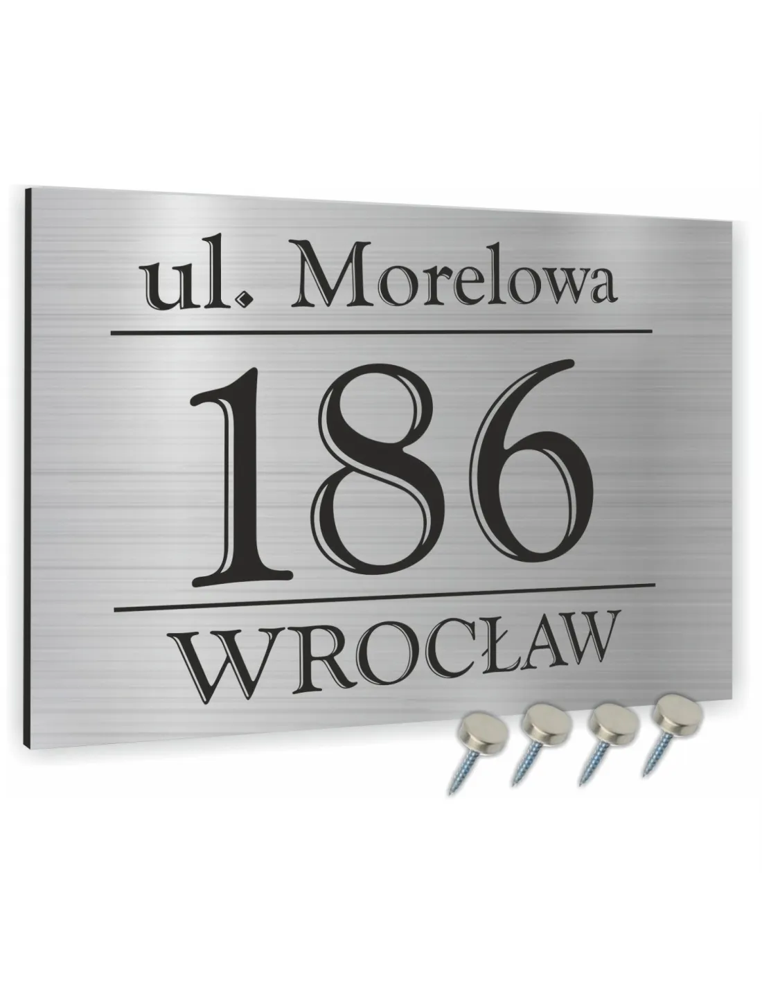 NUMER NA BUDYNEK dom Tabliczka INOX ALUMINIUM 3D 40x30 cm dibond