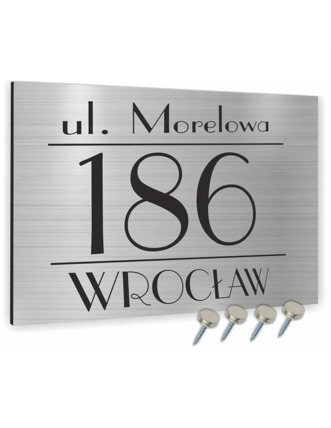 ELEGANCKA TABLICZKA ADRESOWA Z WŁASNYMI DANYMI WYKONANA Z PŁYTY DIBOND Z ELEGANCKIM I TRWAŁYM NADRUKIEM UV.