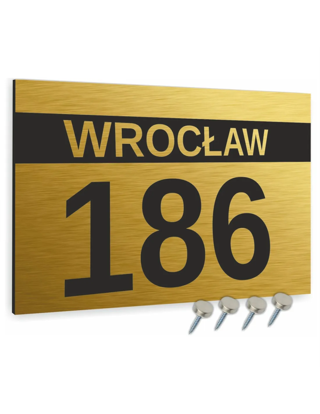 Tabliczka ADRESOWA Aluminiowa złota Numer domu dibond 20x15cm