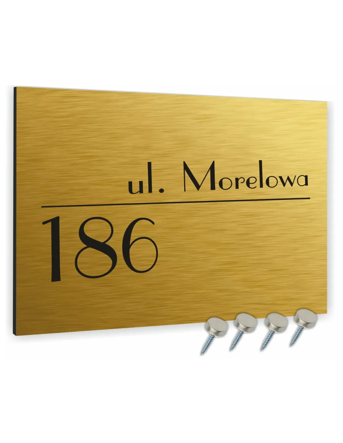 TABLICA tabliczka ADRESOWA Z NUMEREM DOMU 20x30 cm złota dibond