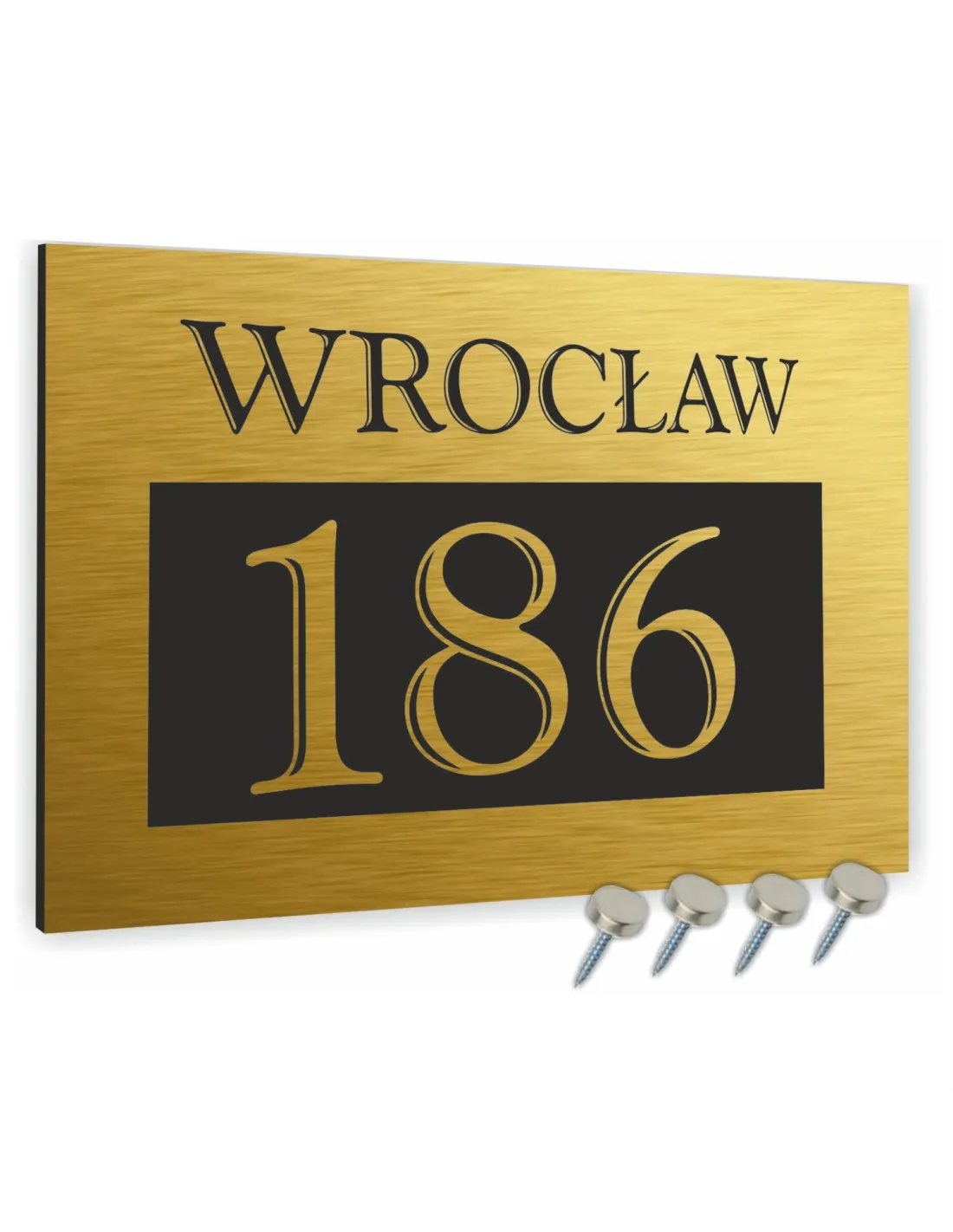 ELEGANCKA TABLICZKA ADRESOWA Z WŁASNYMI DANYMI WYKONANA Z PŁYTY DIBOND Z ELEGANCKIM I TRWAŁYM NADRUKIEM UV.