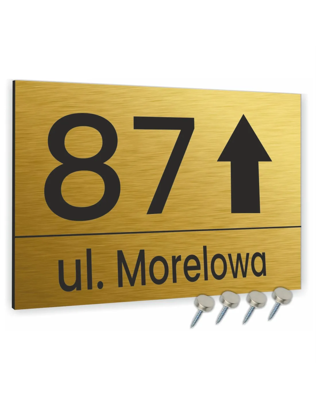 Tabliczka ADRESOWA Z TWOIM ADRESEM STRZAŁKA NUMER dibond złota 40x30 cm