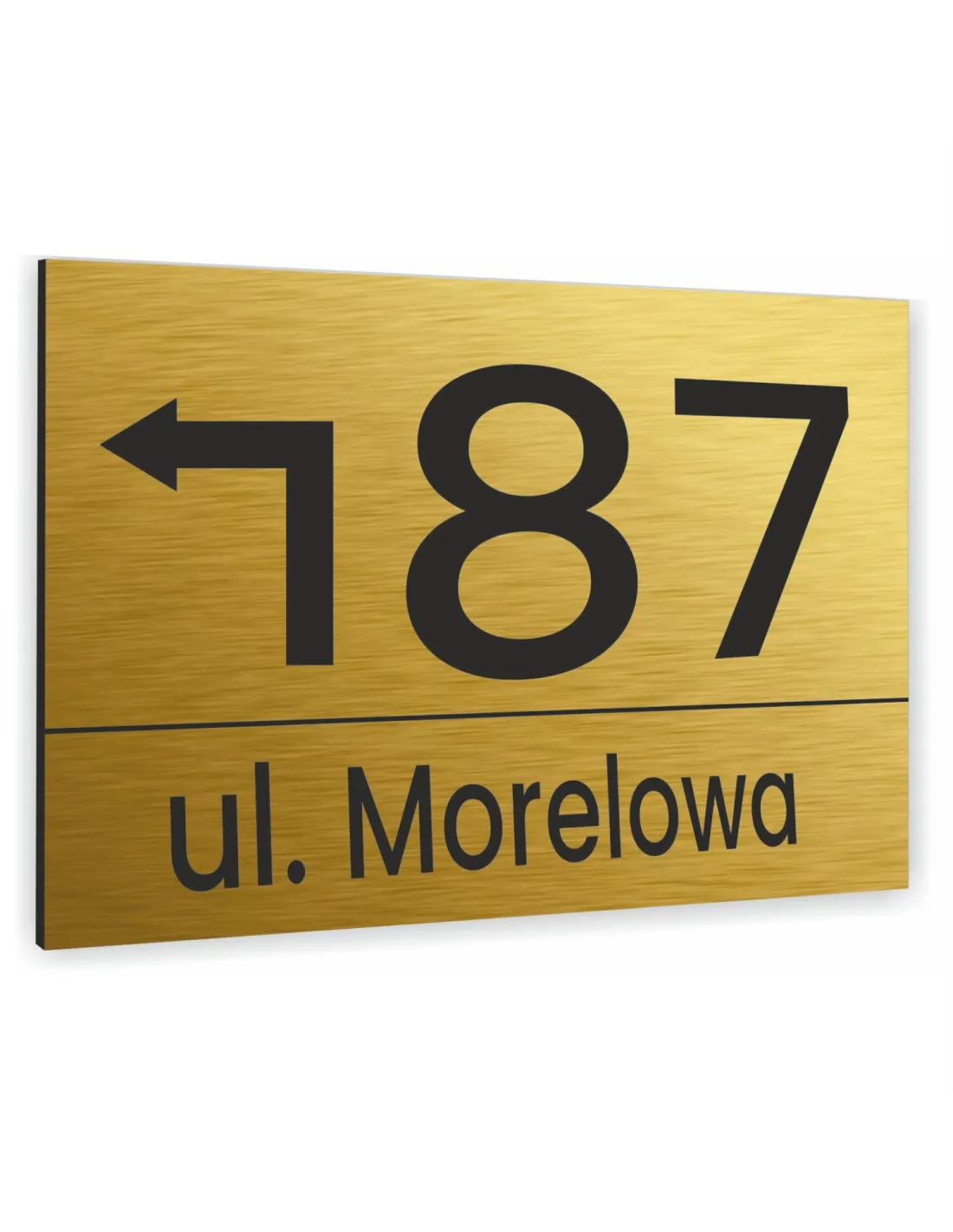 TABLICZKA tablica adresowa NUMER DOMU strzałka złota 40x30 cm dibond